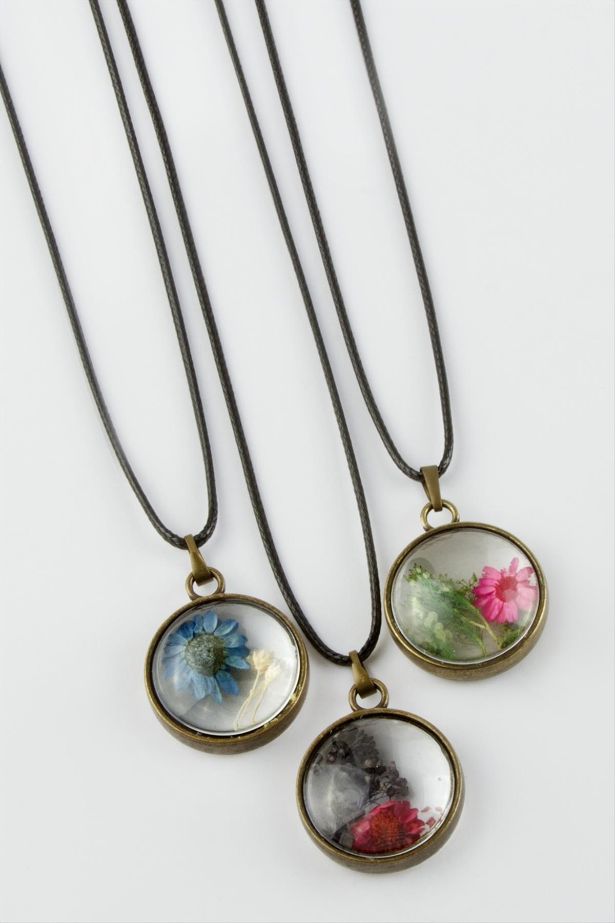 Karışık Renkli Çiçek Canlı Kolye