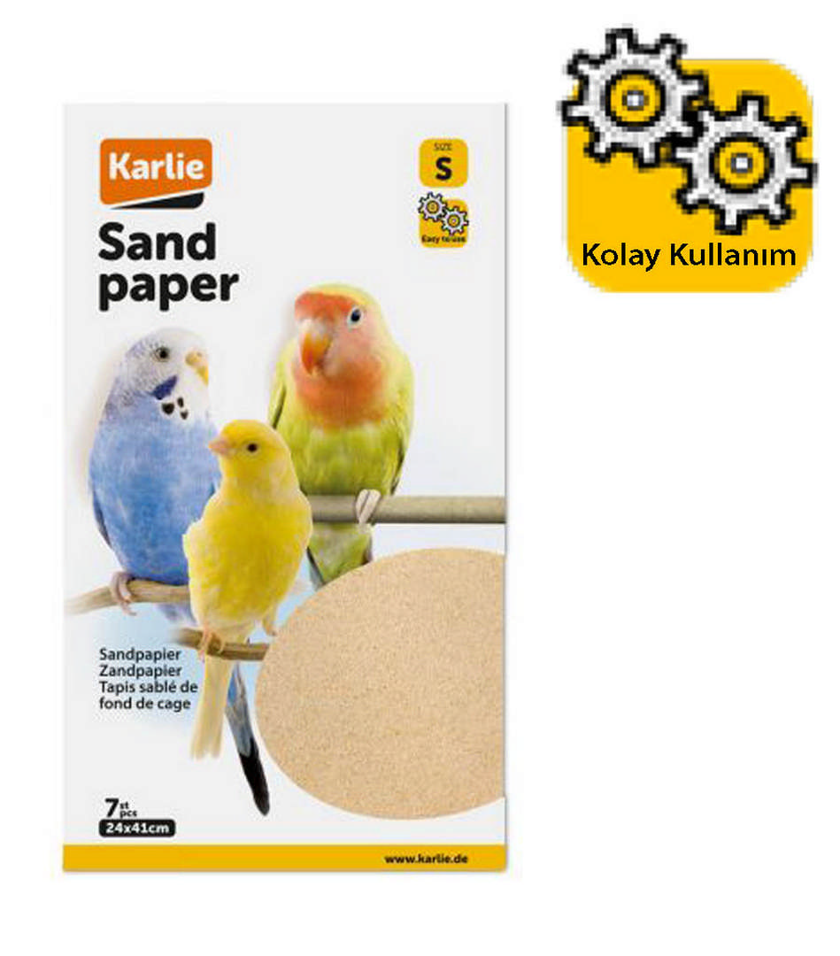 Kuf kafesleri tabanlarına sermek için üretilmiş bu zımparalı kuş kağıdı, kuş kumu için pratik bir alternatiftir. Bir kat zımpara kağıdı kafes tabanına yerleştirilir ve kafes tabanını daima temiz ve hijyenik tutmak için düzenli olarak yenilenir. Ayrıca, zımpara değerli mineraller, kalsiyum ve öğütülmüş kireç taşı içerir. Bu bileşenler kuşların refahını arttırır ve sindirimi kolaylaştırır. ZImparalı yapısı sayesinde kuşun gagası ve tırnaklarının aşırı uzamasının önüne geçilir. Kanaryalar, muhabbet kuşları ve diğer tüm kafes kuşları için idealdir.