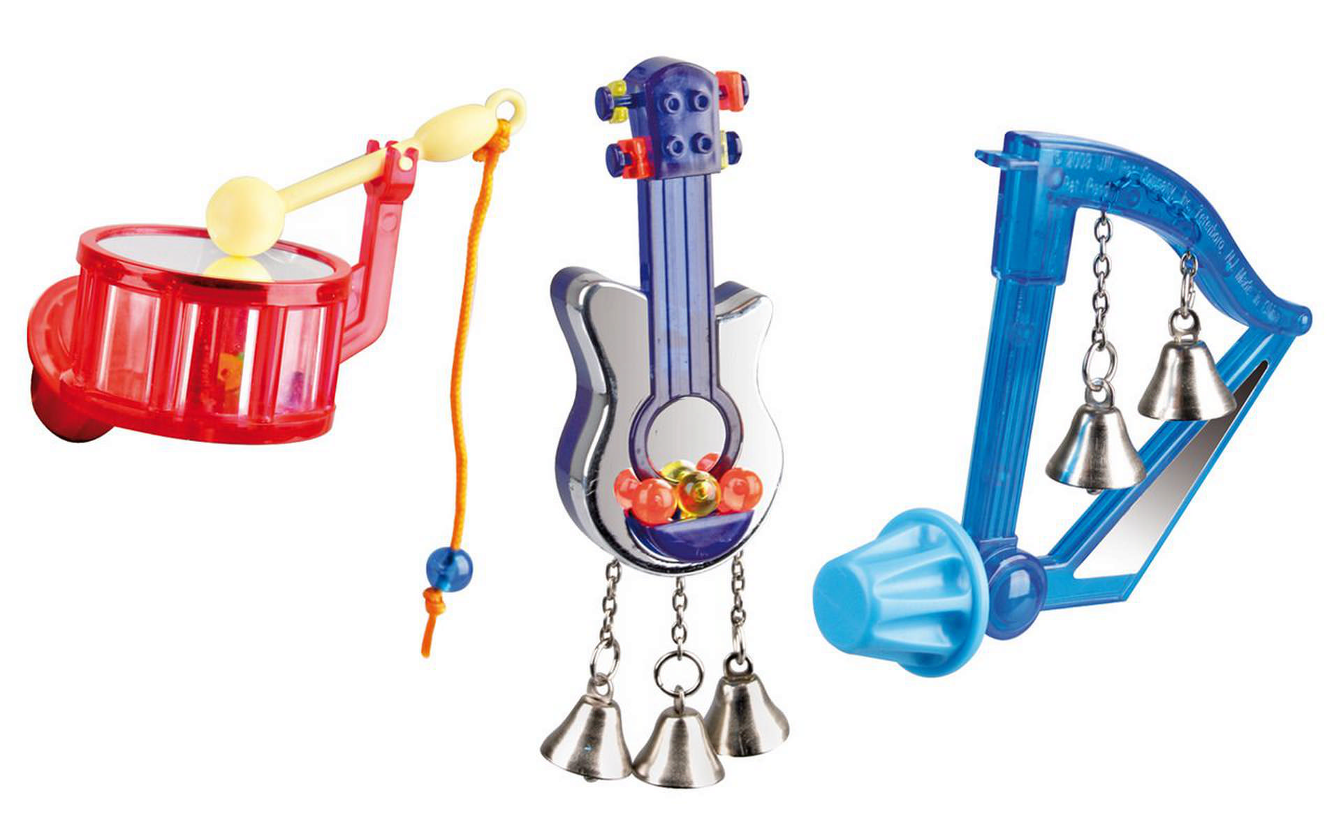 Kuşlar kafeslerinde sıkılmamak için oyuncaklara ihtiyaç duyabilirler. Kuş oyuncakları hoş vakit geçirmelerini sağlar. Göz alıcı renklere sahip ve çıngıraklı, müzik aleti şeklindeki oyuncaklar ile kuşlar çok eğlenecek. Uzunluk: 8 cm.