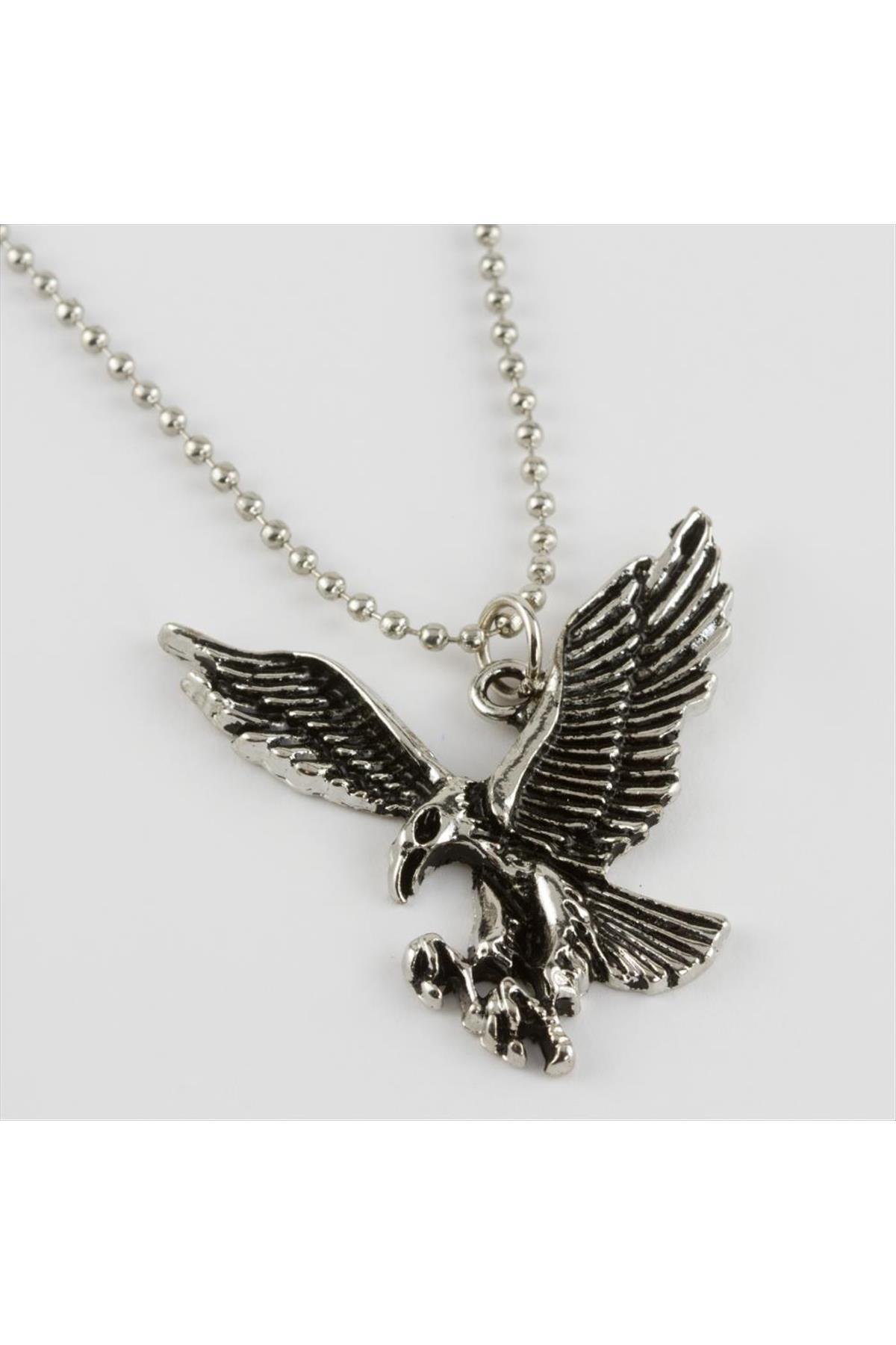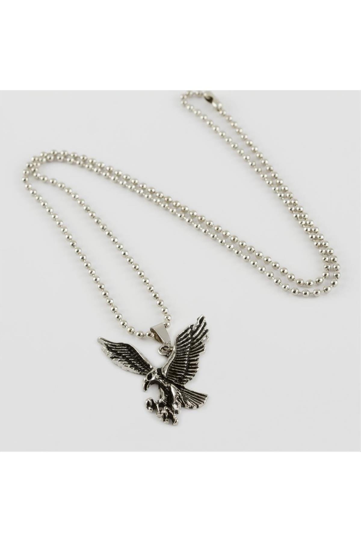 Kartal Figürlü Erkek Kolye-Gümüş Rengi