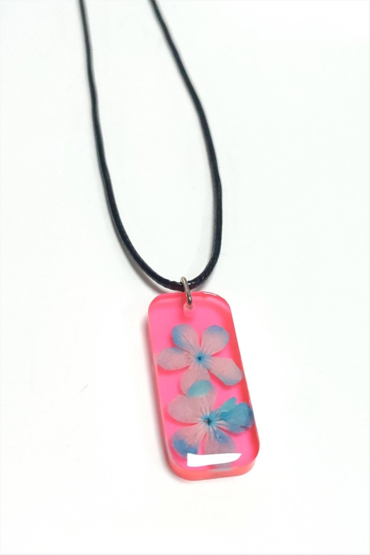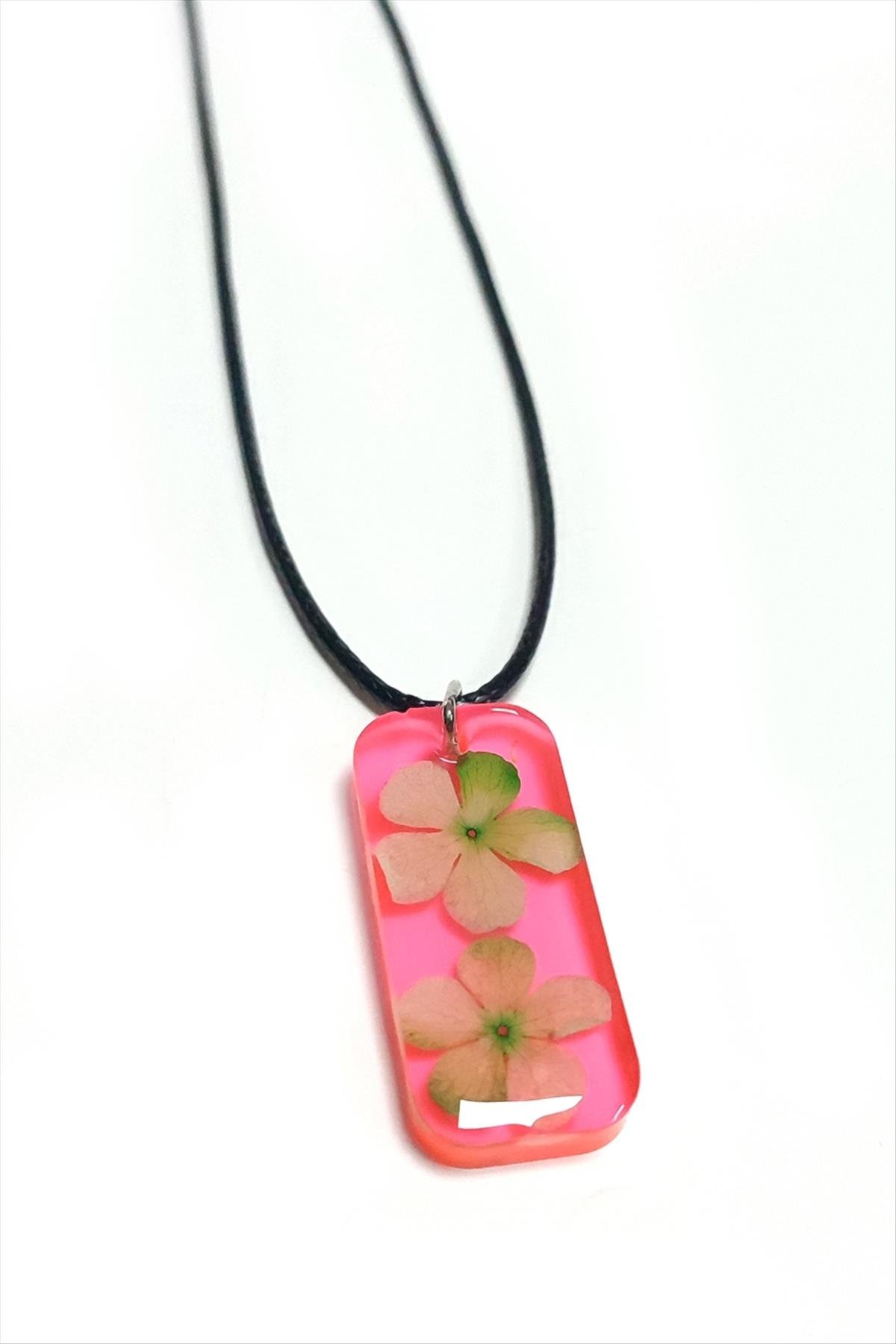 Kartopu Çiçeği Dikdörtgen Epoksi Kolye-Açık Pembe