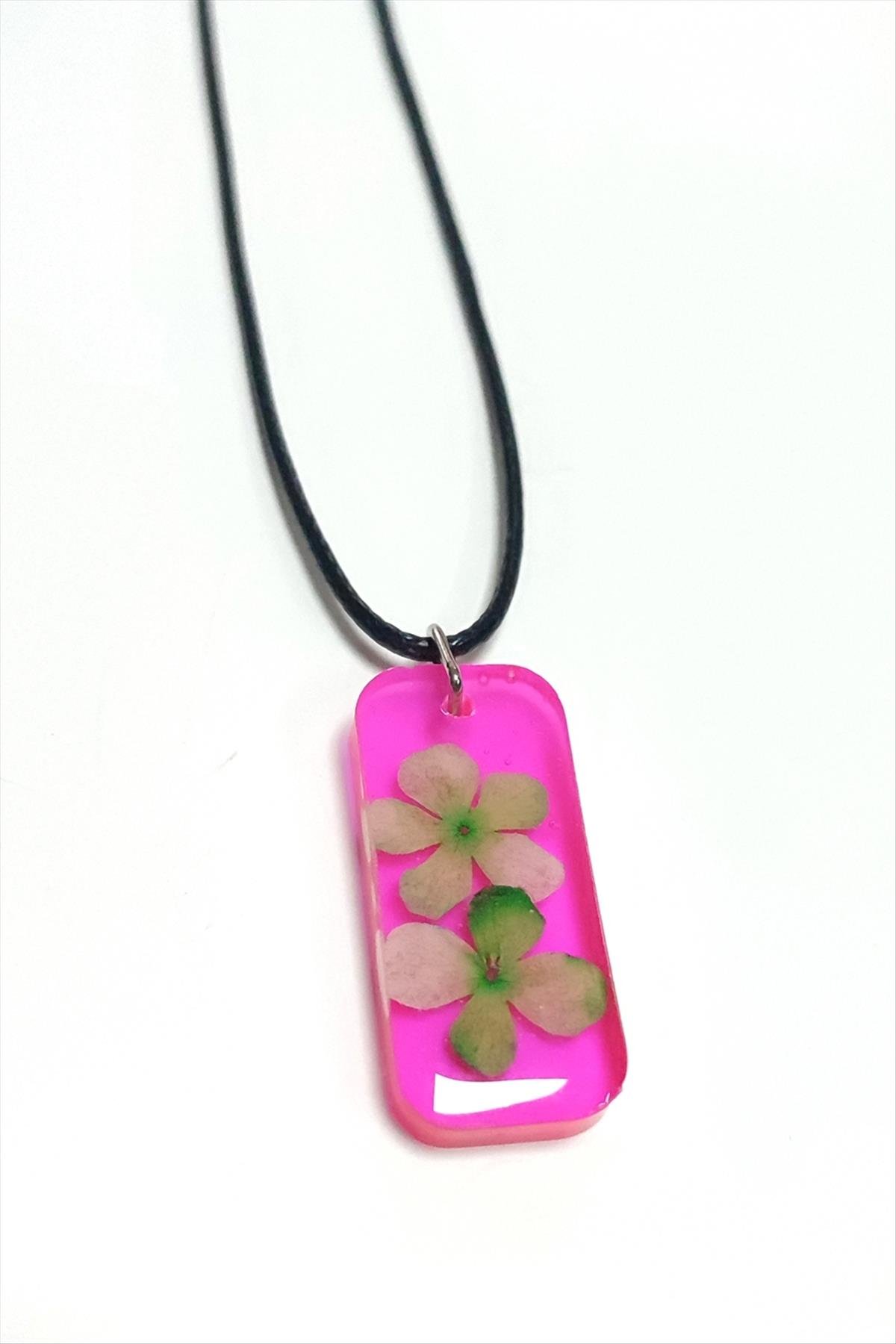 Kartopu Çiçeği Dikdörtgen Epoksi Kolye-Pembe