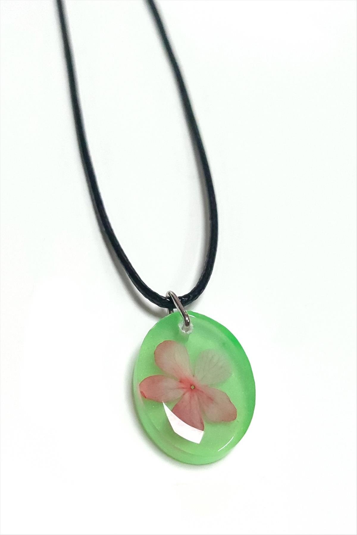 Kartopu Çiçeği Oval Epoksi Kolye-Yeşil