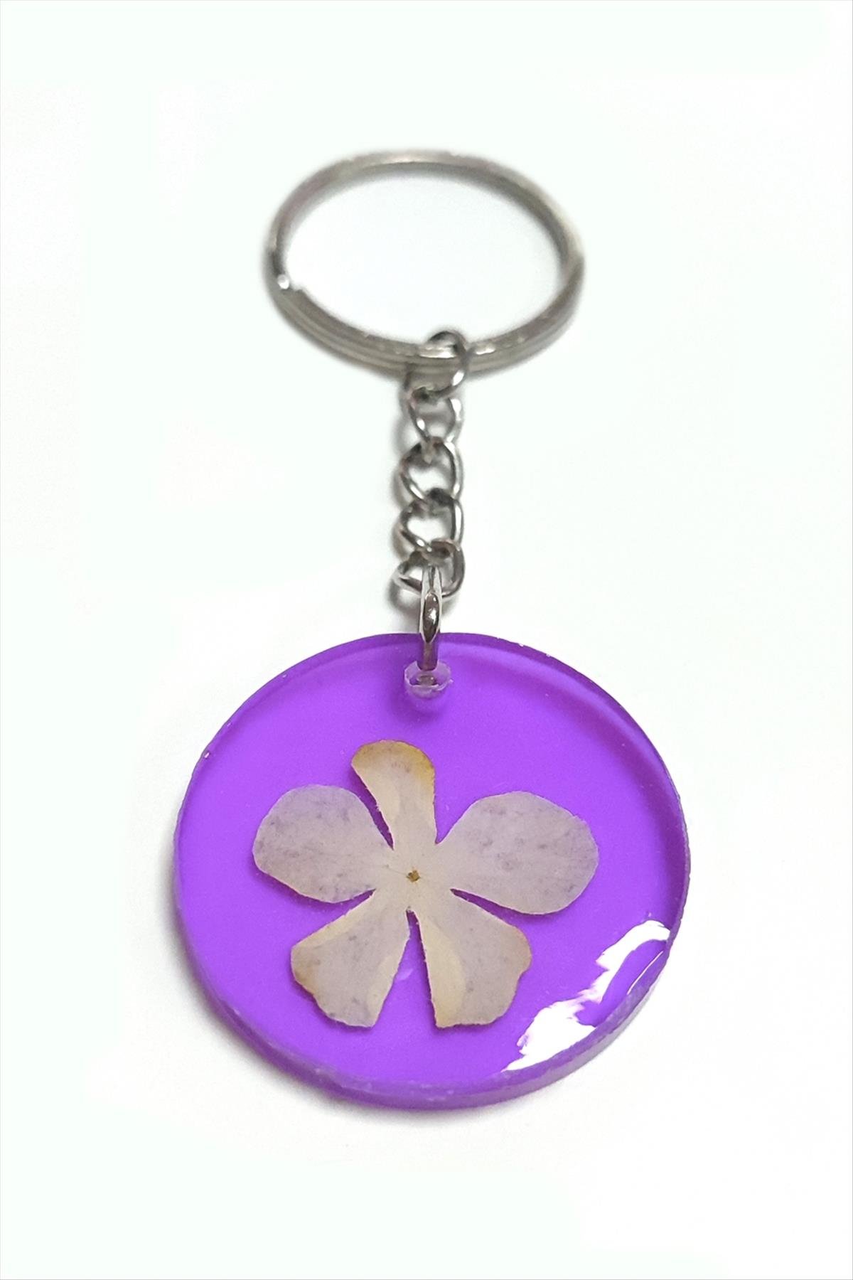 Kartopu Çiçeği Papatya Epoksi Anahtarlık-Mor
