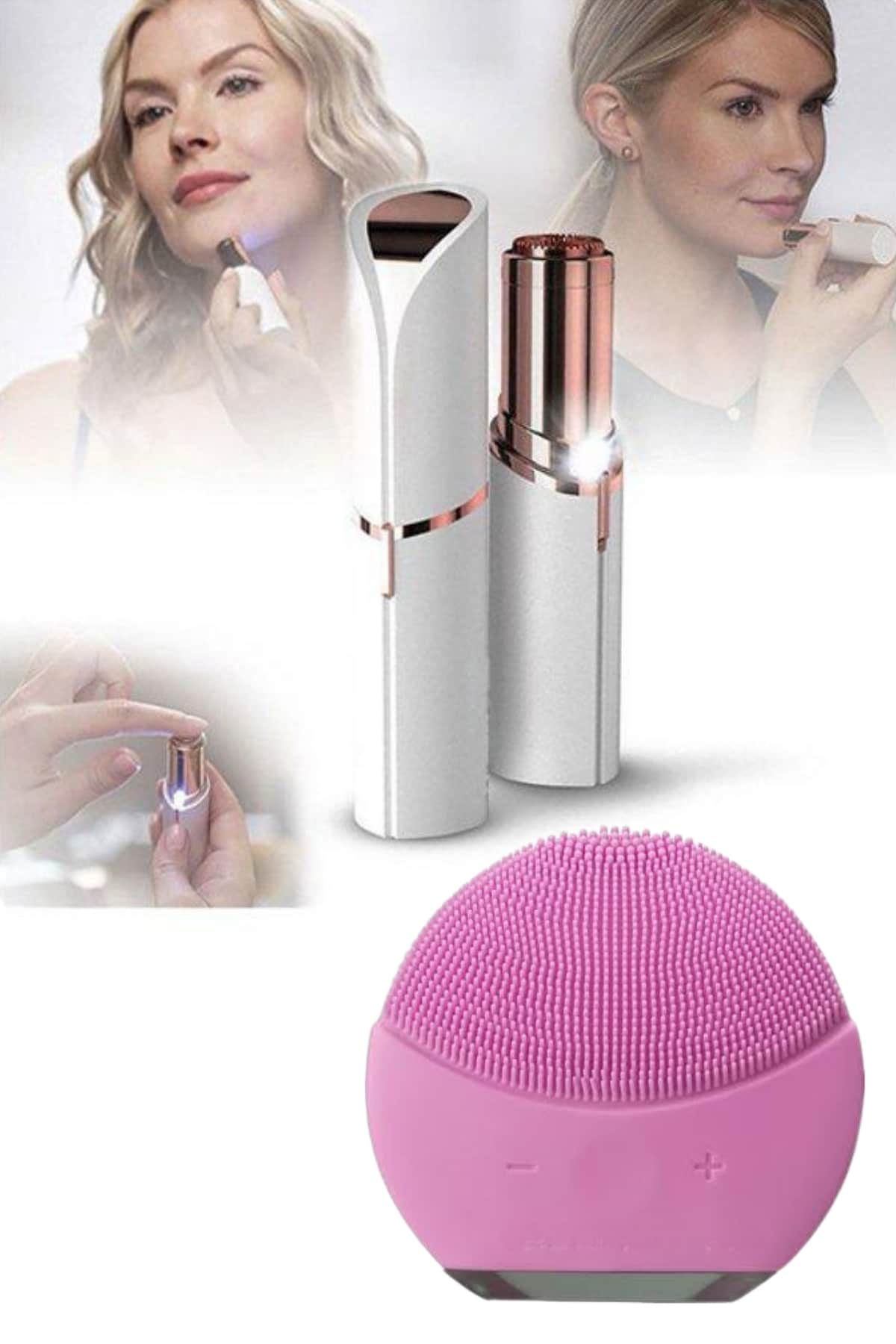 KAŞ BIYIK VE YÜZ EPİLASYON ALETİ VE TİTREŞİMLİ YÜZ TEMİZLEME MASAJ ALETİ İKİLİ SET