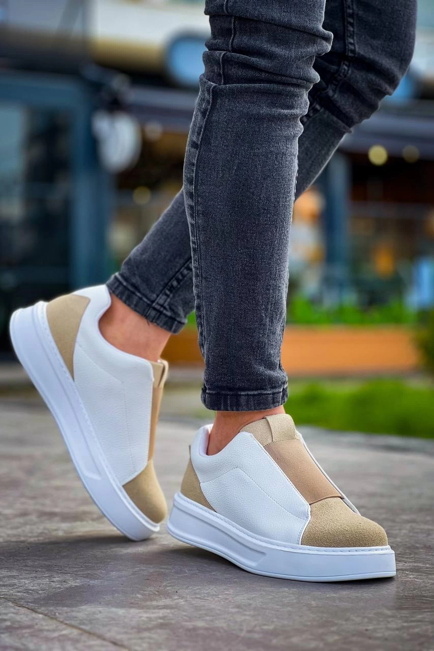 KB-007 Kuback Beyaz Bej Yüksek Taban Tek Bant Bağcıksız Günlük Erkek Ayakkabı (Numara: 43)