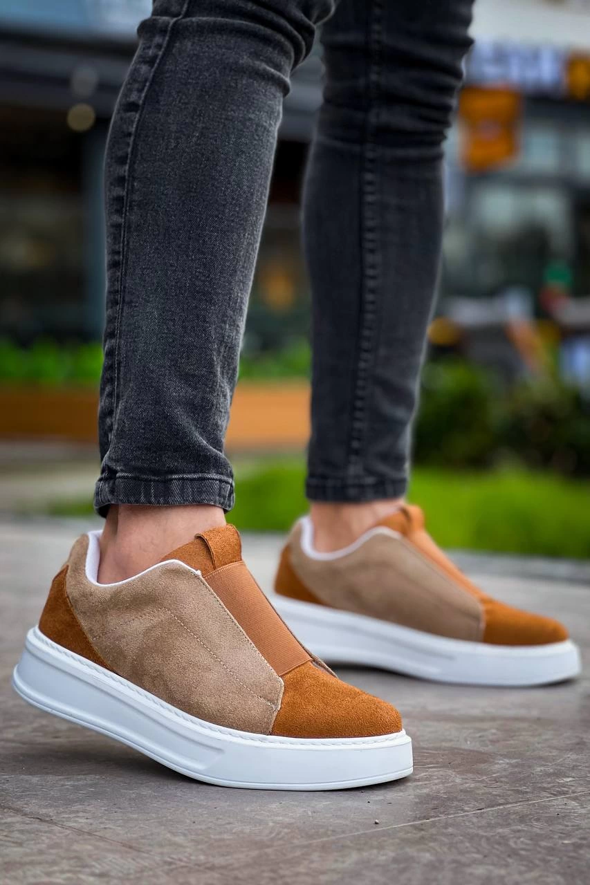 Kb-007 Kuback Vizon Taba Yüksek Taban Tek Bant Bağcıksız Günlük Erkek Ayakkabı (Numara: 41)