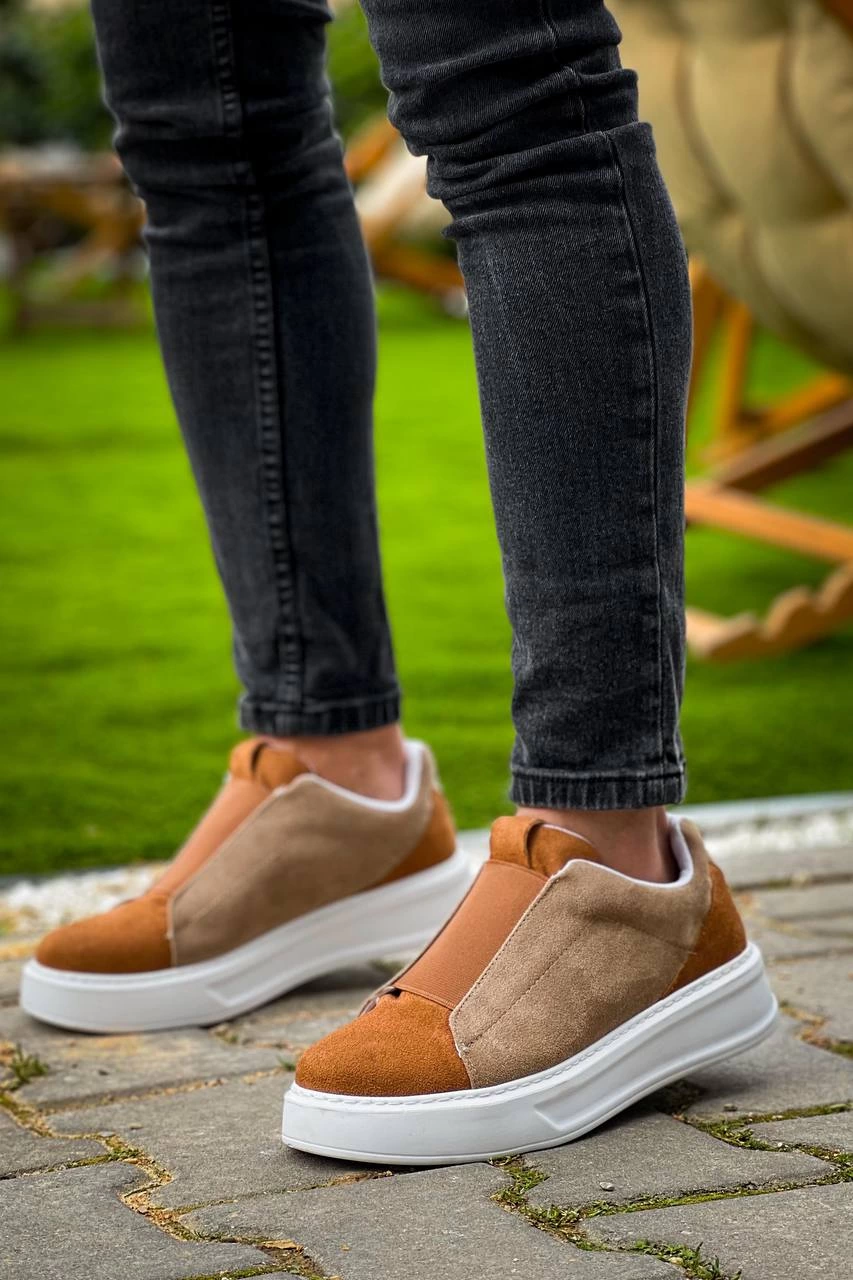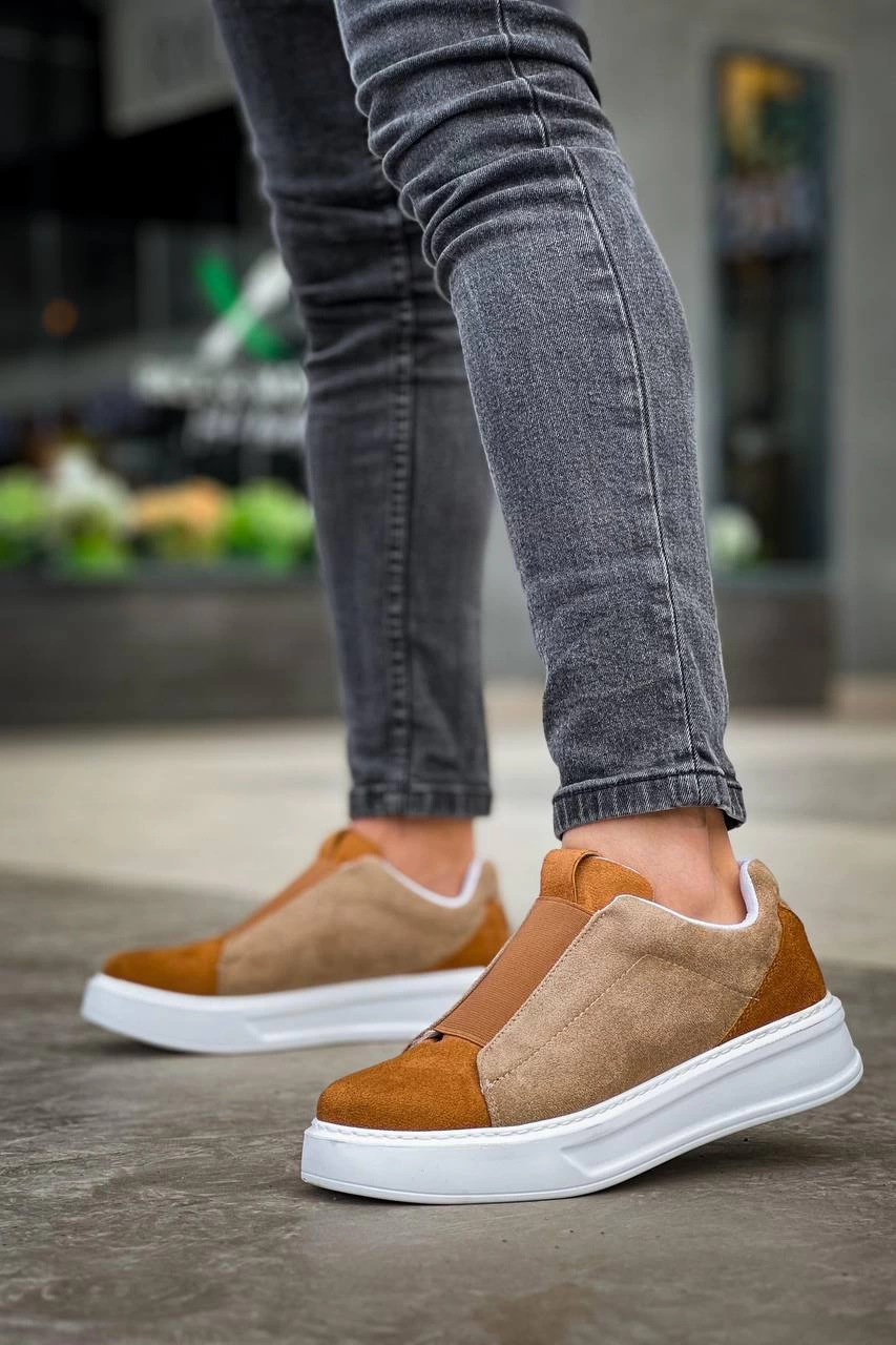 Kb-007 Kuback Vizon Taba Yüksek Taban Tek Bant Bağcıksız Günlük Erkek Ayakkabı (Numara: 42)