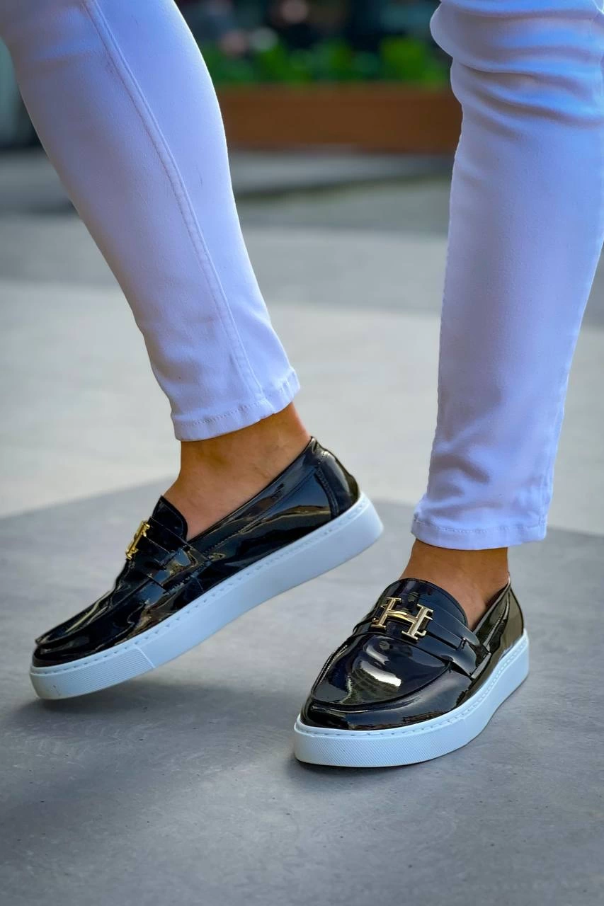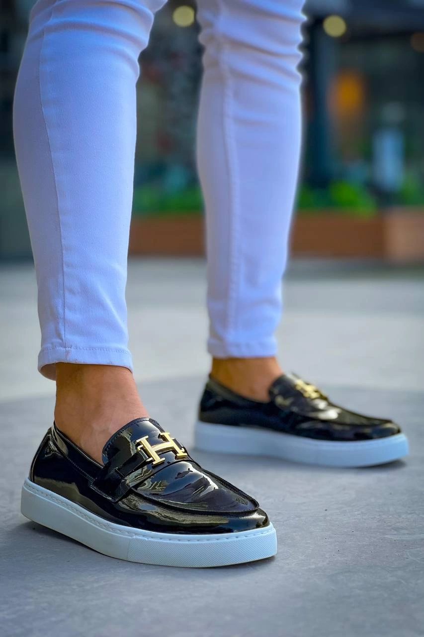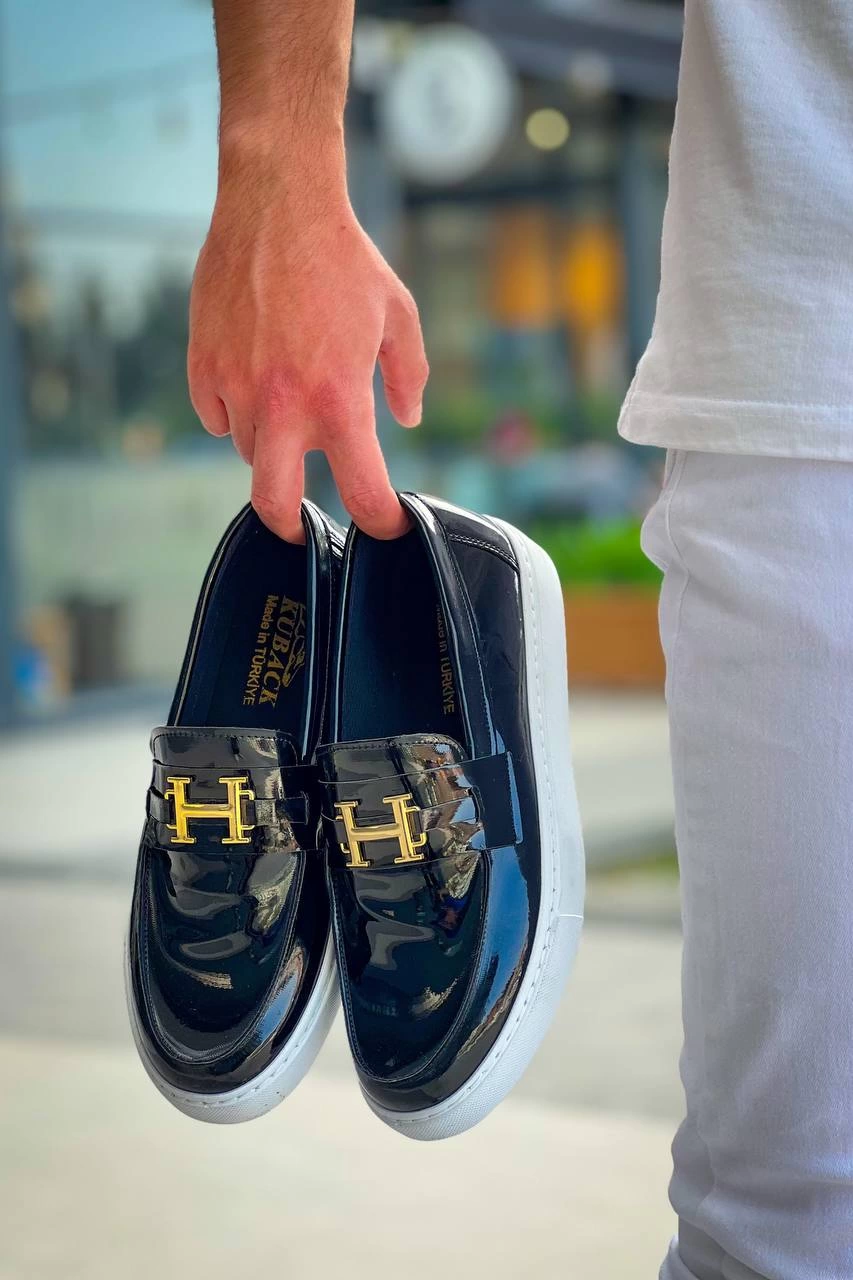 Kb-027 Kuback Bağcıksız Siyah Rugan H Günlük Erkek Ayakkabı (Numara: 40)