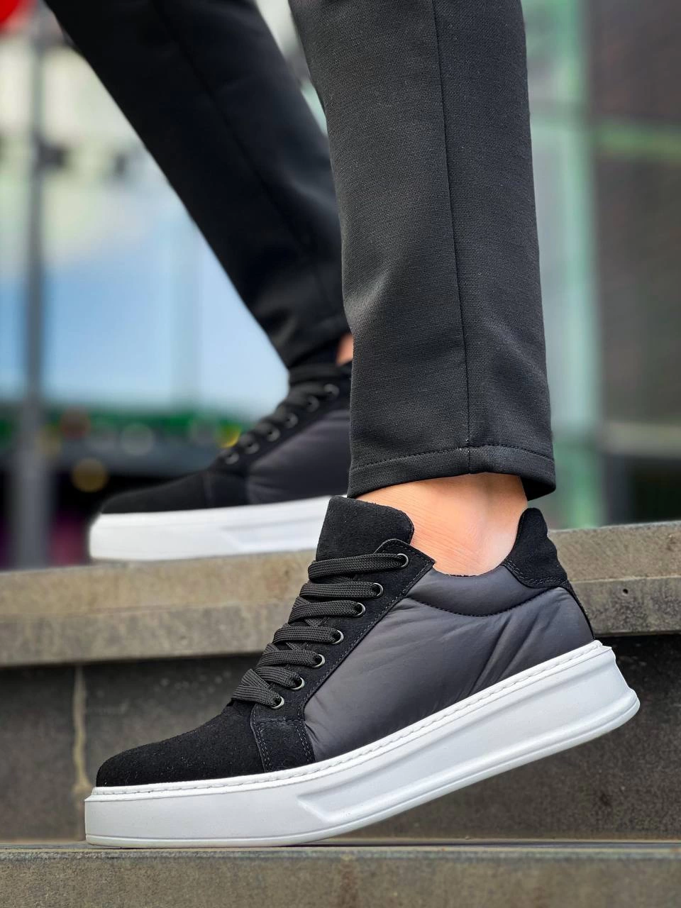 Kb-046 Kuback Siyah Paraşüt Beyaz Yüksek Taban Günlük Spor Ayakkabı (Numara: 41)