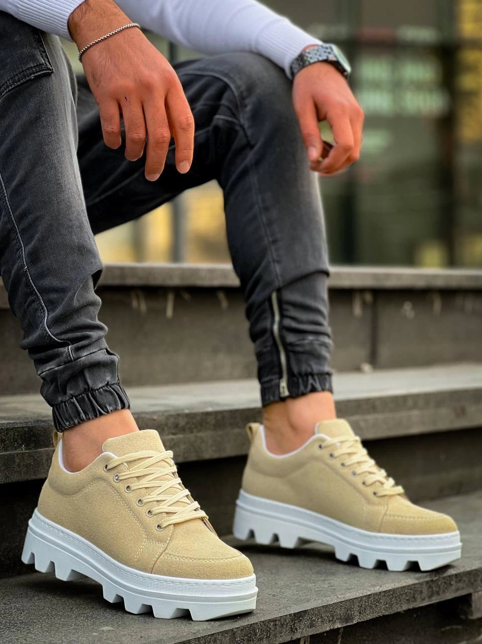 Kb-056 Kuback Bej Süet Beyaz Yüksek Taban Günlük Spor Ayakkabı (Numara: 40)