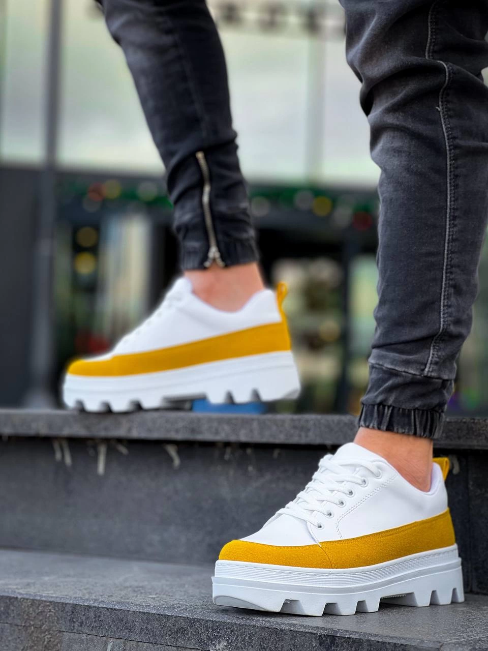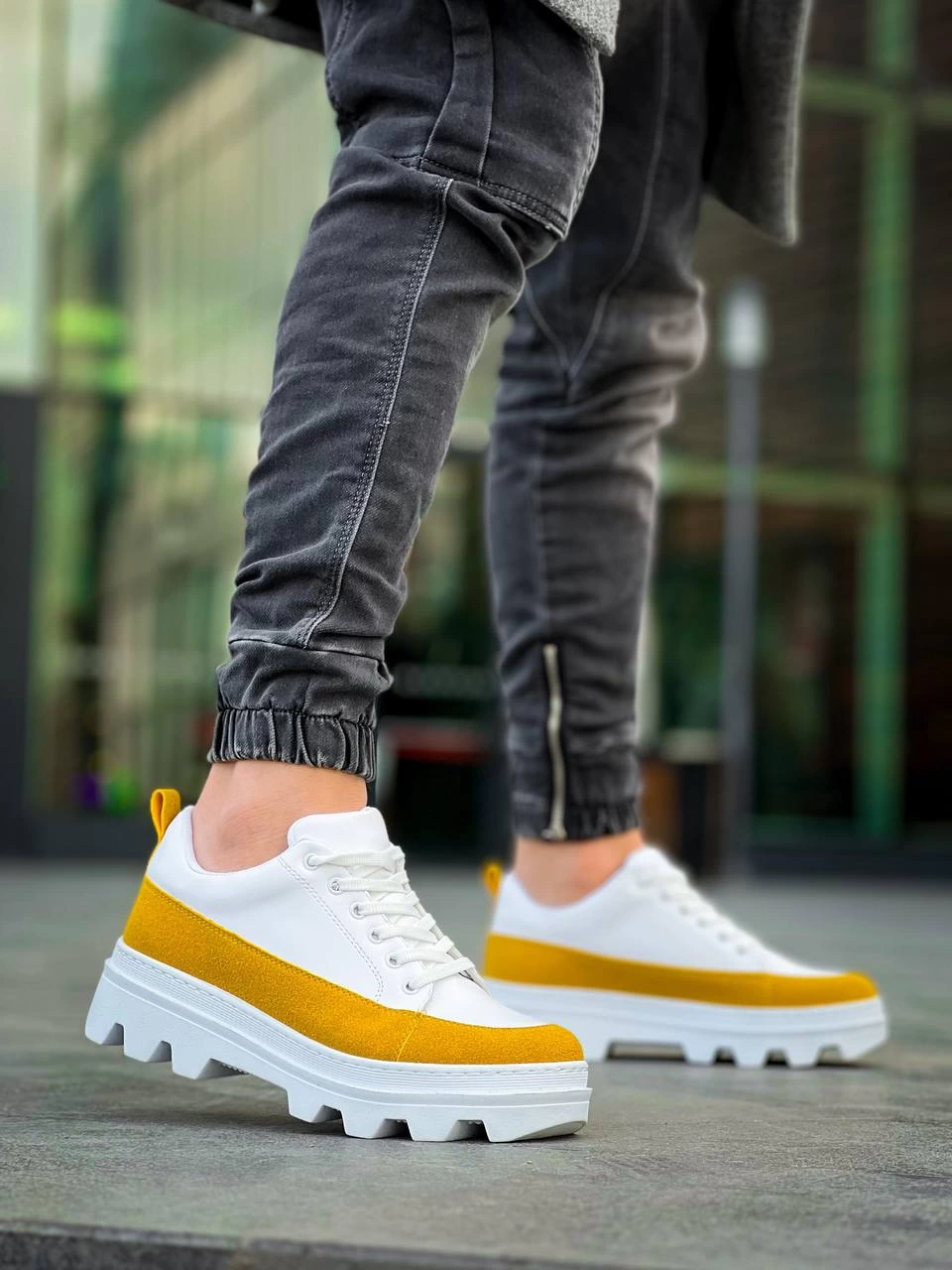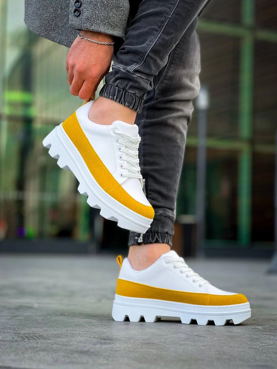 KB-056 Kuback Beyaz Sarı Detaylı Beyaz Yüksek Taban Günlük Spor Ayakkabı (Numara: 42)