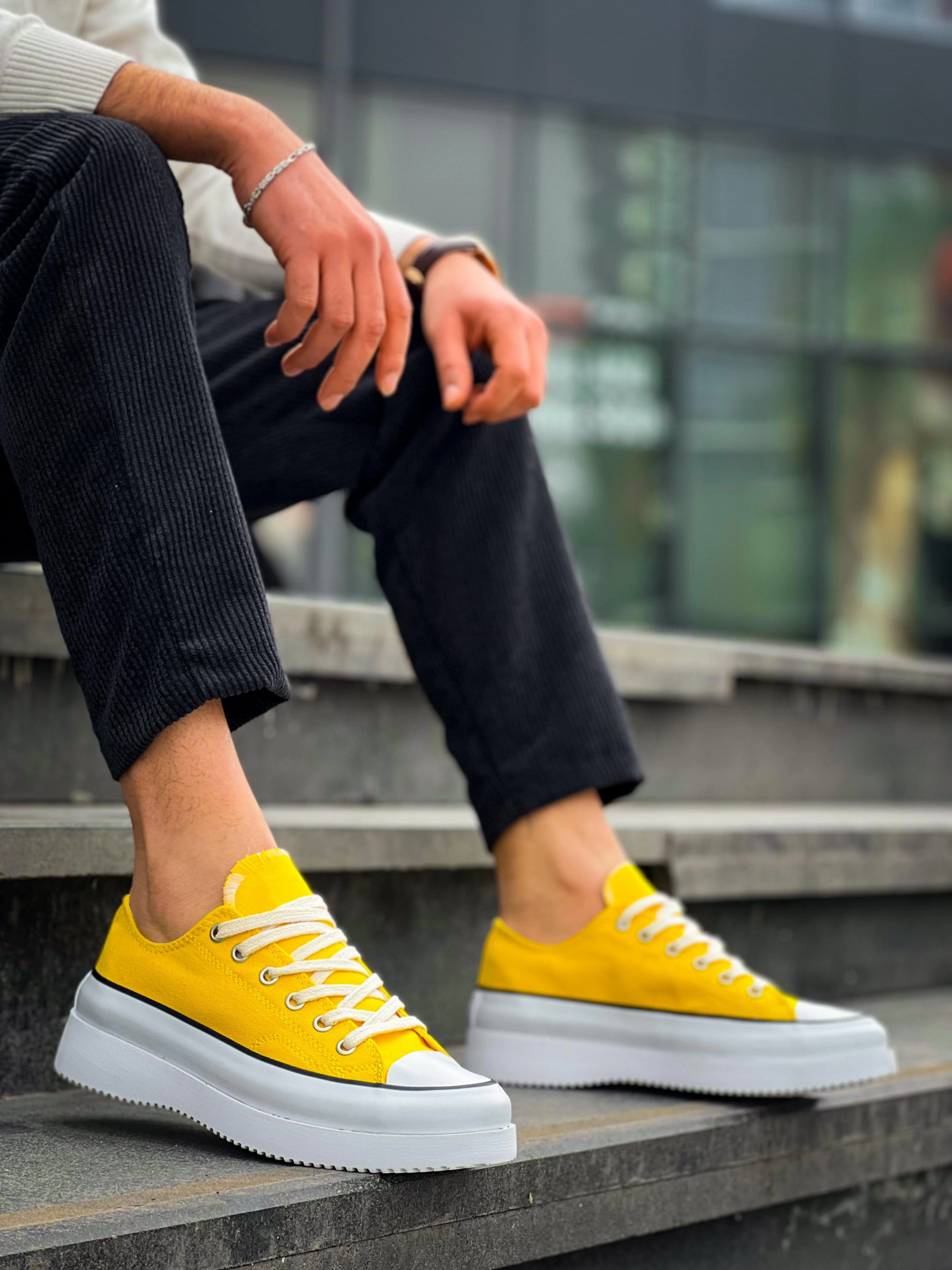 Kb-Cx-3 Kuback Kısa Sarı Keten Beyaz Yüksek Taban Spor Ayakkabı (Numara: 41)