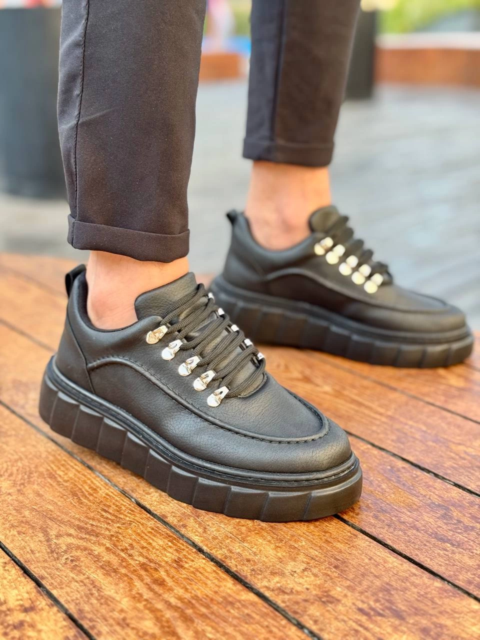 Kb-X10 Kuback Kömür Cilt Yüksek Taban Günlük Spor Ayakkabı (Numara: 44)