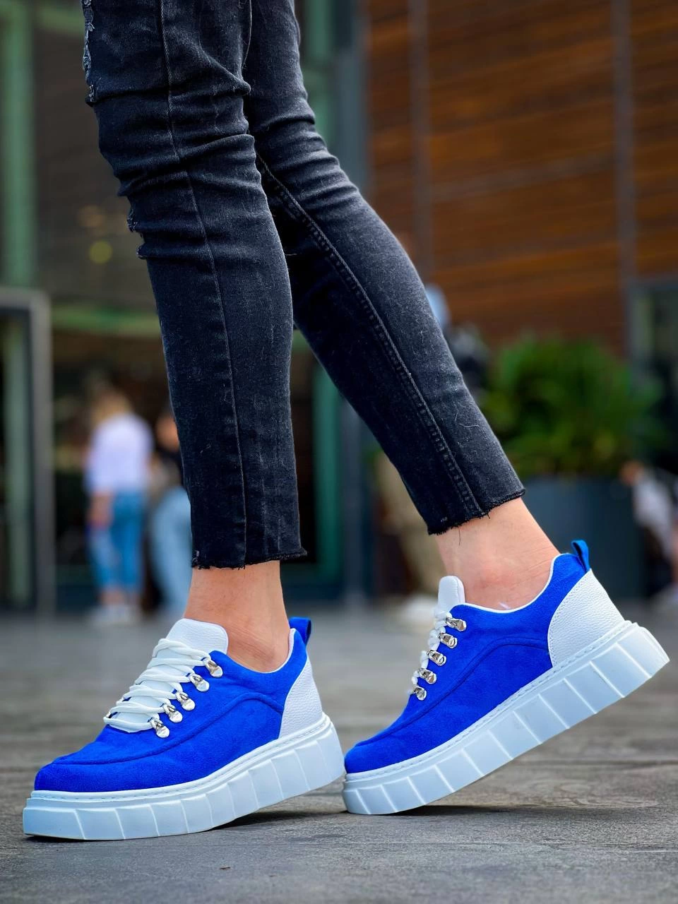 KB-X10 Kuback Sax Süet Beyaz Yüksek Taban Günlük Spor Ayakkabı Mavi (Numara: 42)