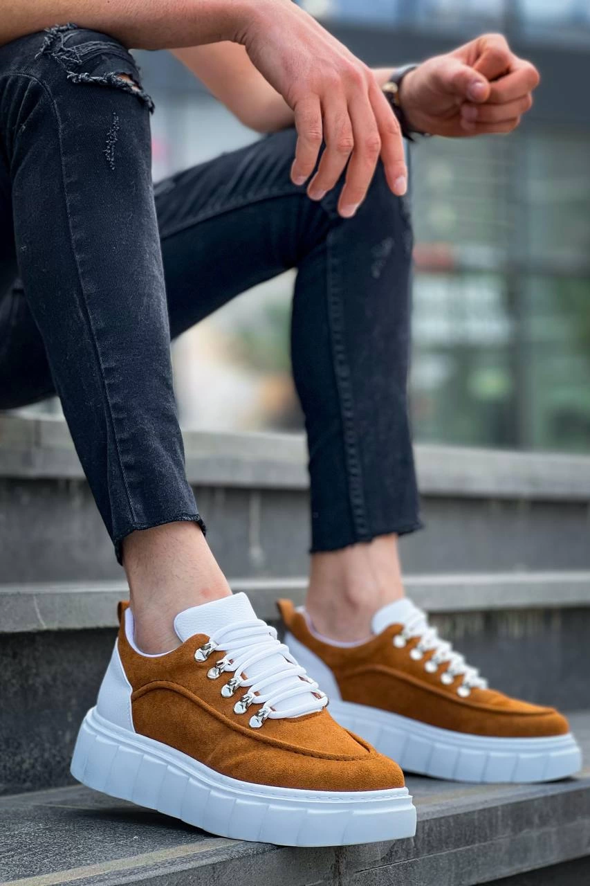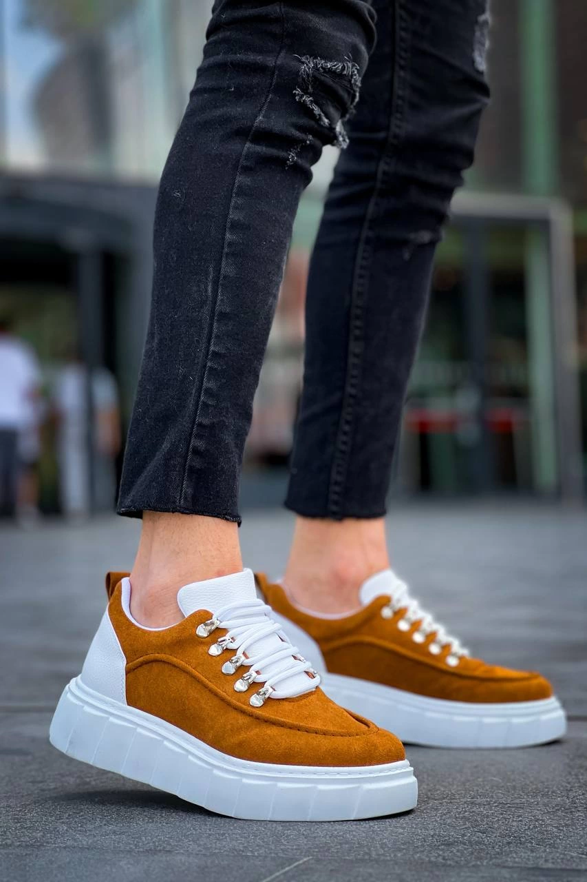 KB-X10 Kuback Taba Süet Beyaz Yüksek Taban Günlük Spor Ayakkabı (Numara: 41)