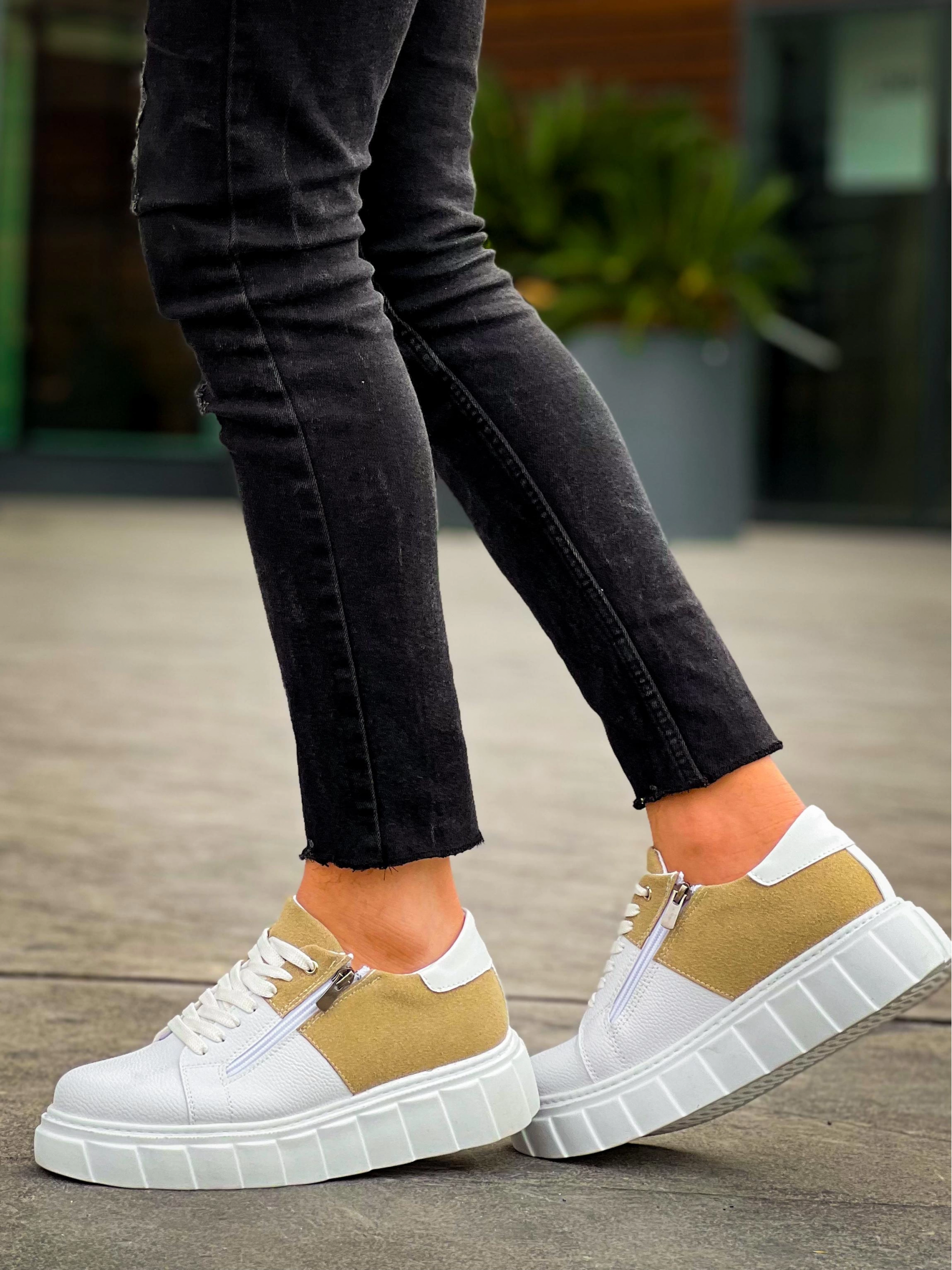 KB-X155 Kuback Beyaz Cilt Bej Süet Detaylı Beyaz Yüksek Taban Günlük Spor Ayakkabı (Numara: 40)