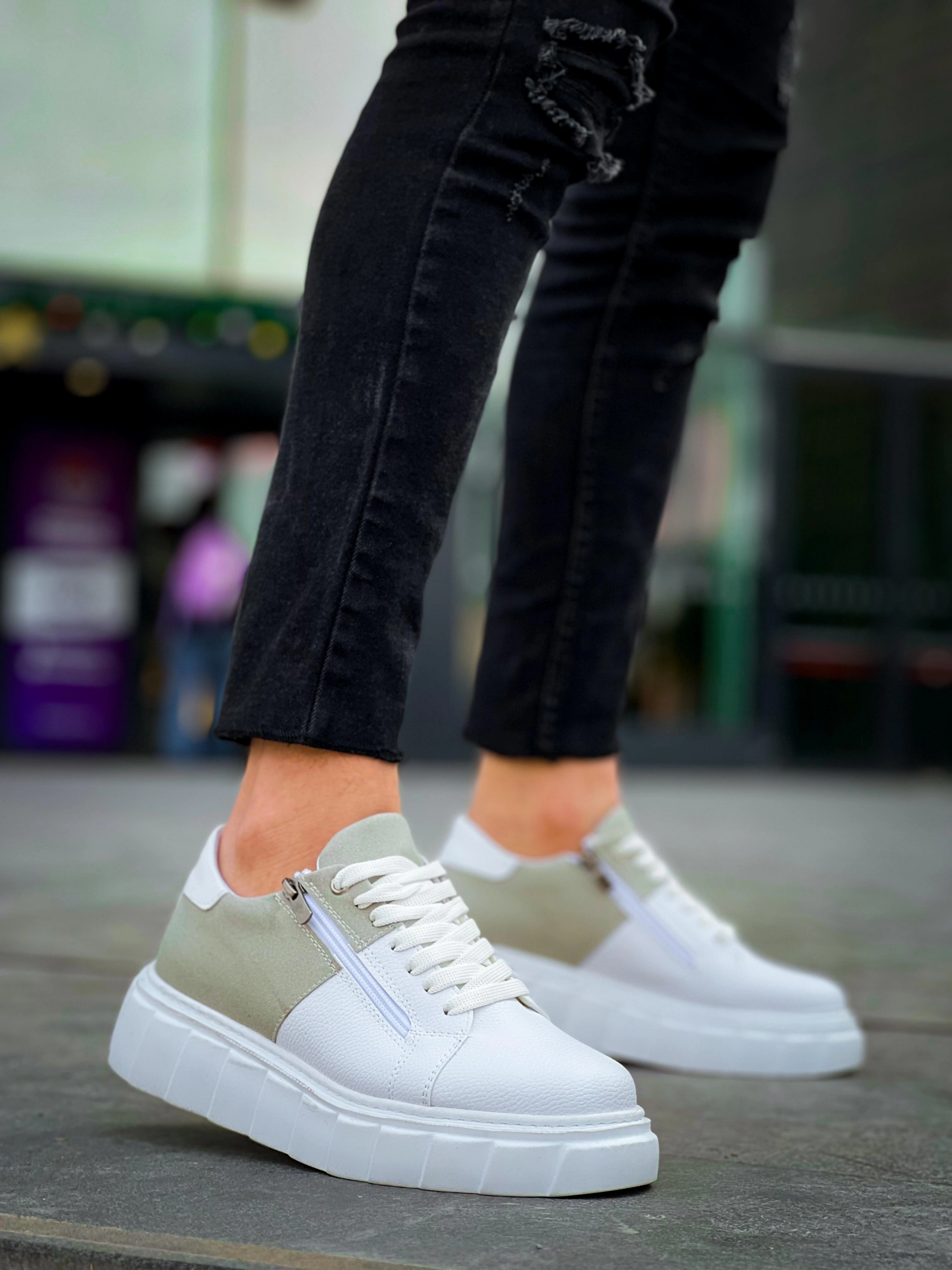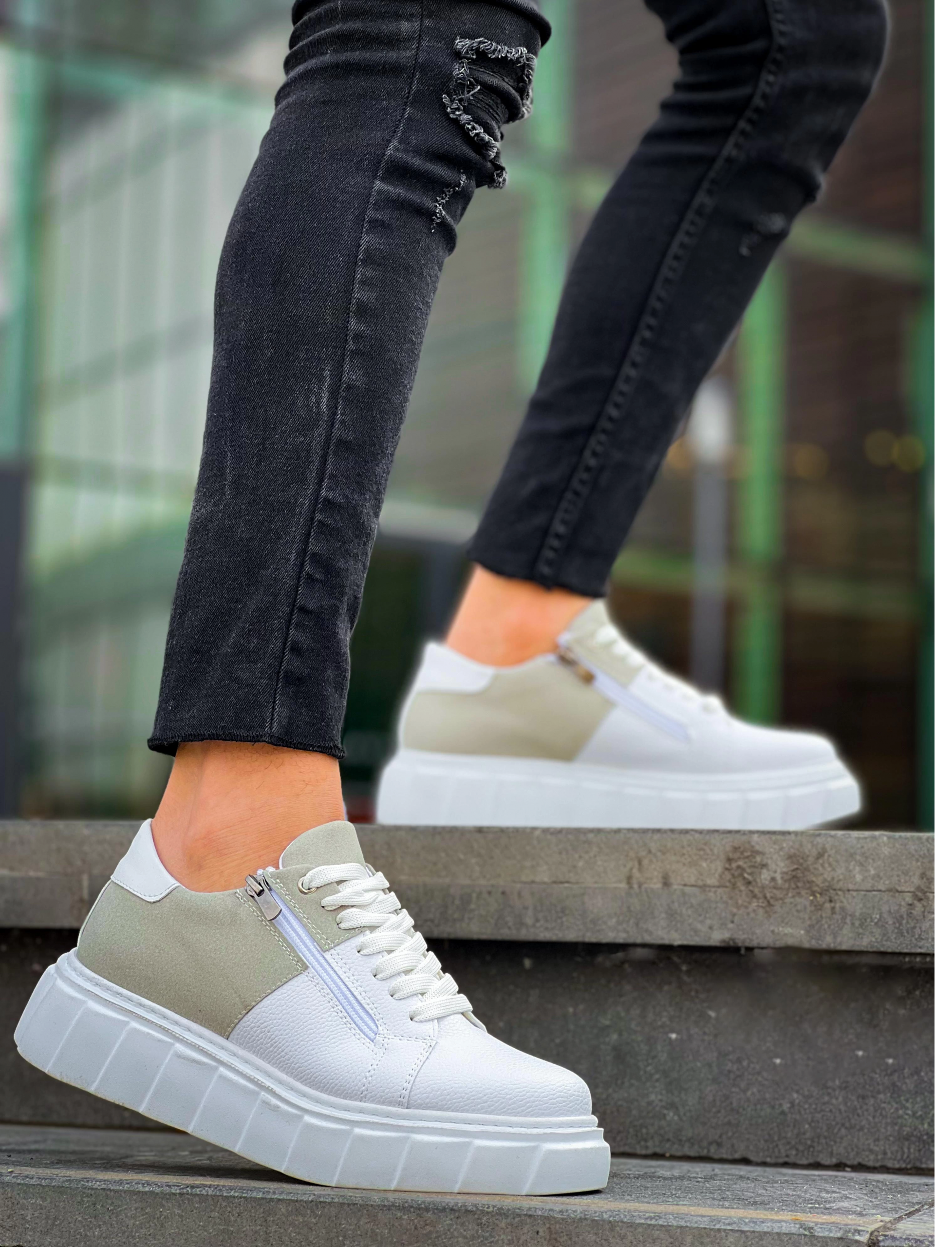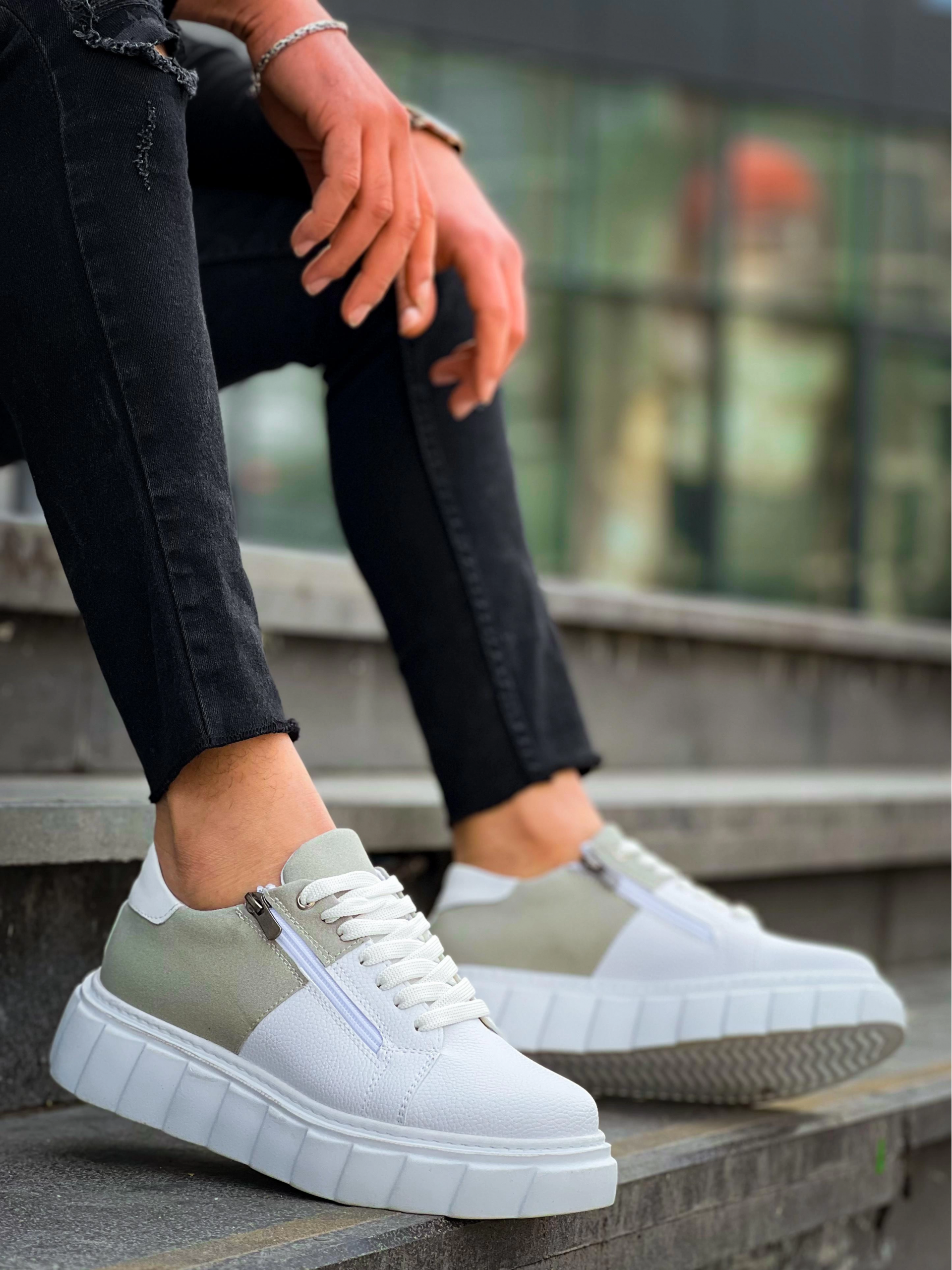 Kb-X155 Kuback Beyaz Cilt Gri Süet Detaylı Beyaz Yüksek Taban Günlük Spor Ayakkabı (Numara: 43)