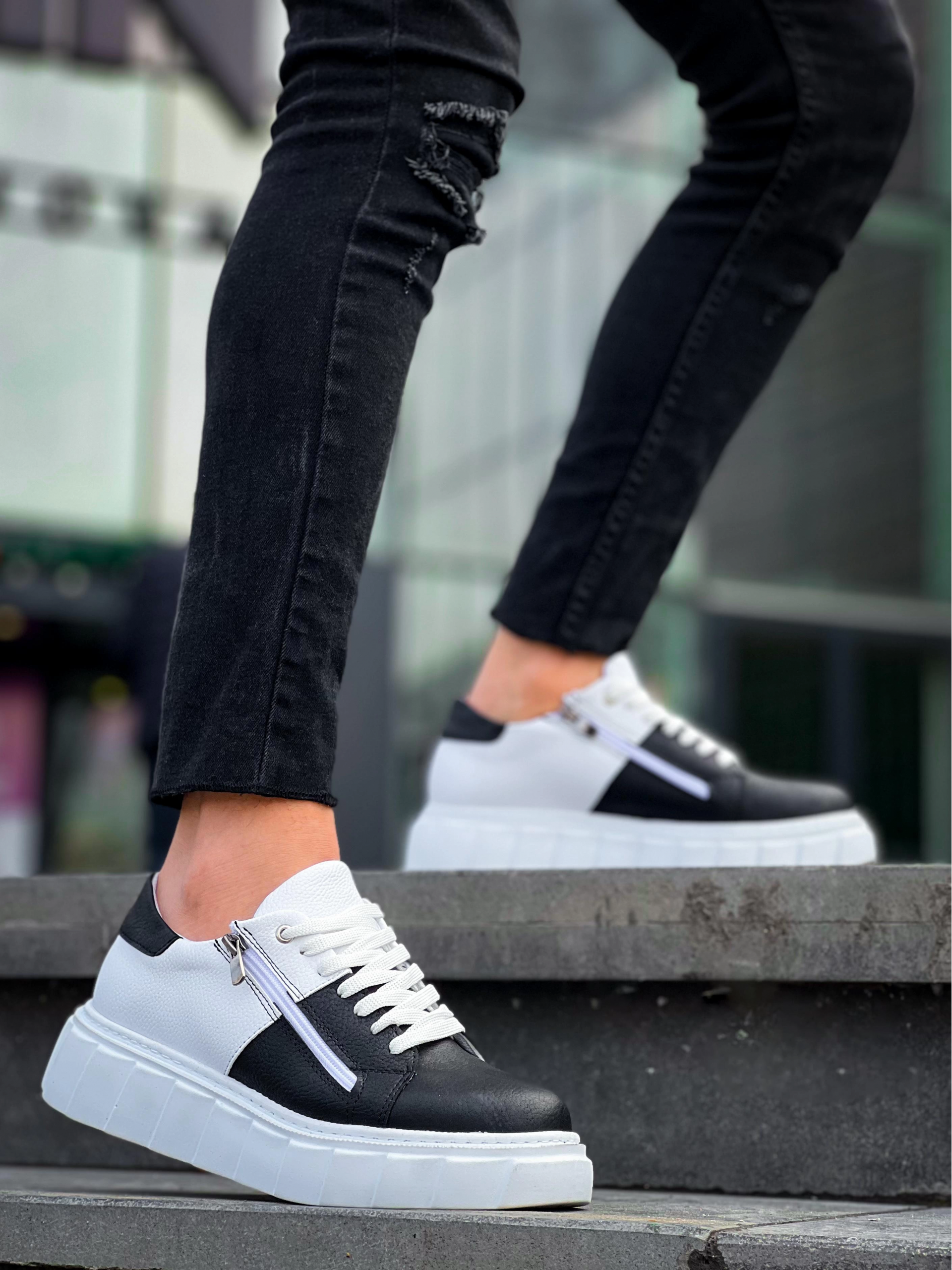 Kb-X155 Kuback Siyah Cilt Beyaz Cilt Detaylı Beyaz Yüksek Taban Günlük Spor Ayakkabı (Numara: 43)