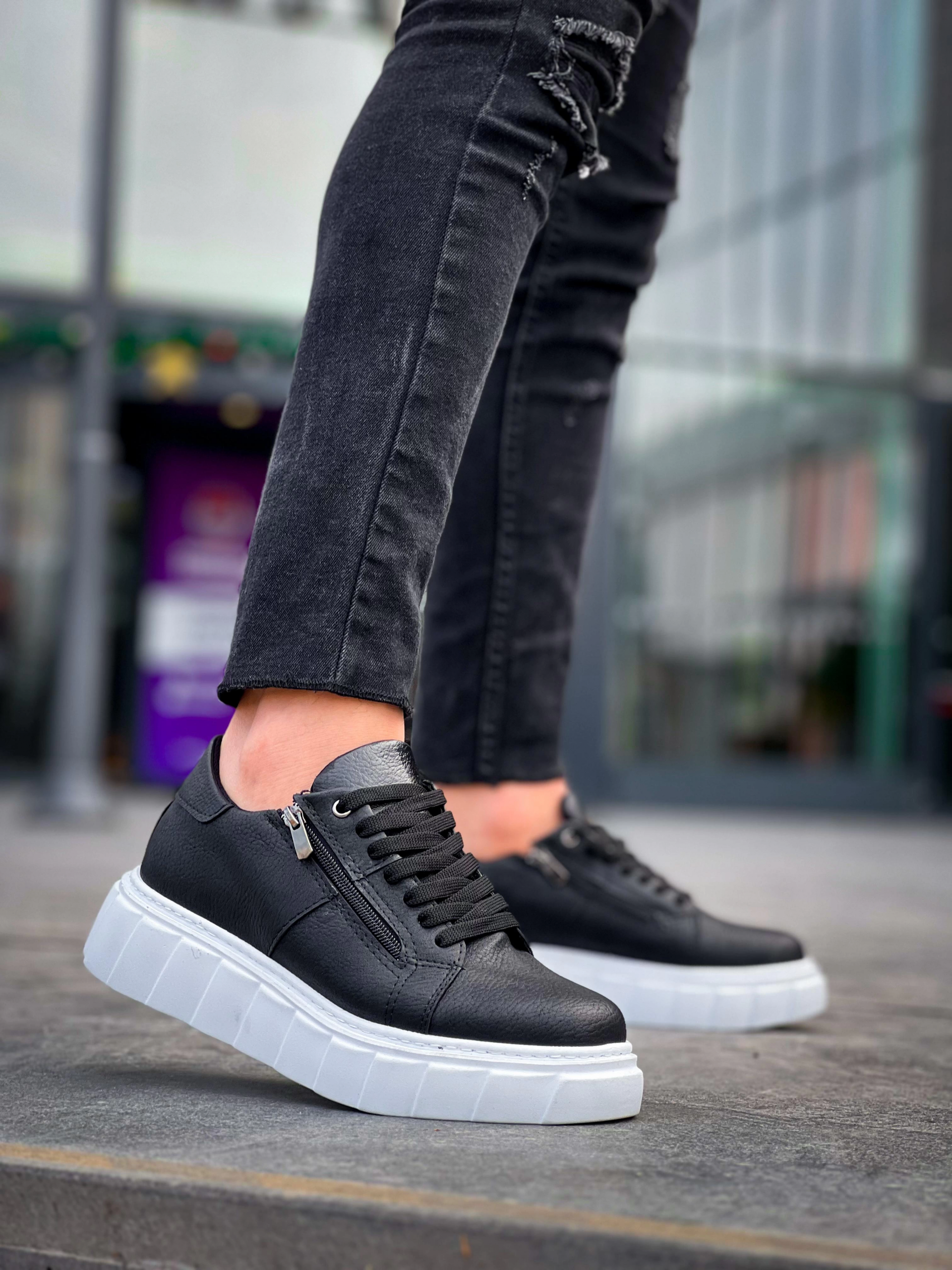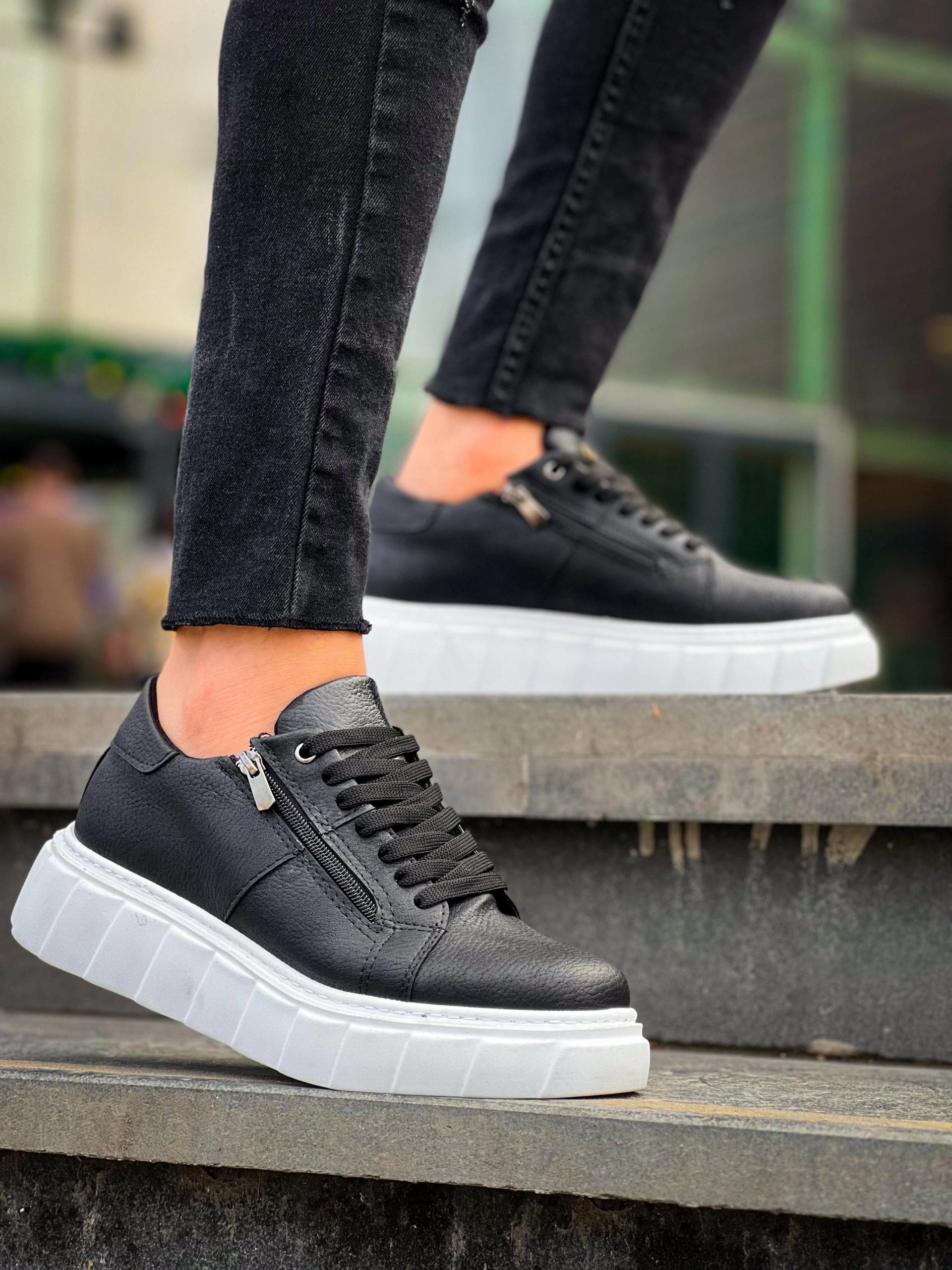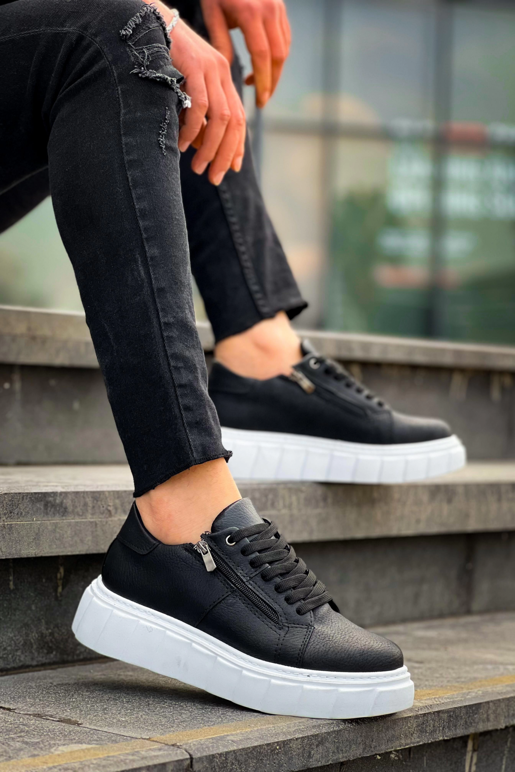 KB-X155 Kuback Siyah Cilt Detaylı Beyaz Yüksek Taban Günlük Spor Ayakkabı (Numara: 44)