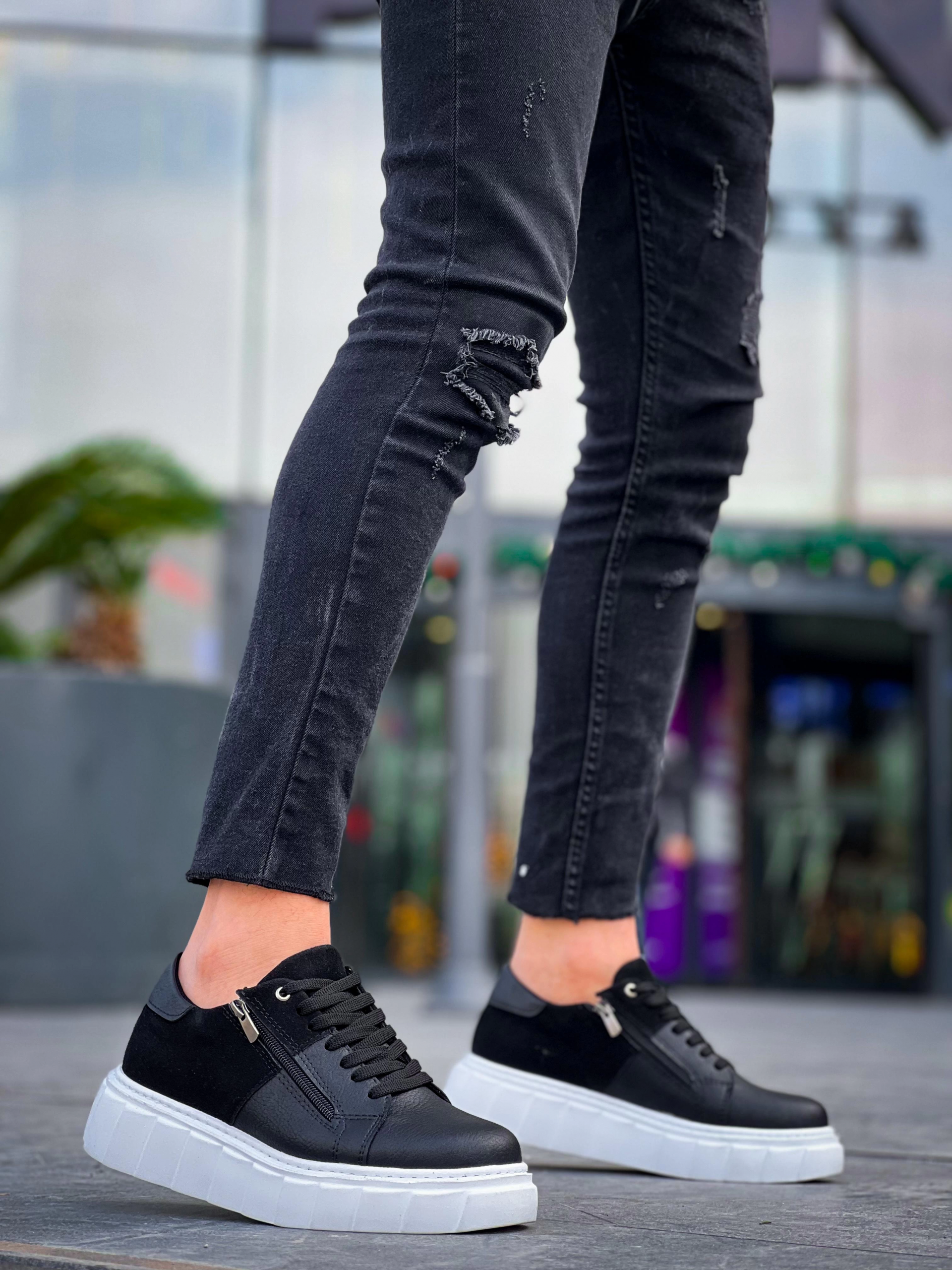 Kb-X155 Kuback Siyah Cilt Siyah Süet Detaylı Beyaz Yüksek Taban Günlük Spor Ayakkabı (Numara: 42)