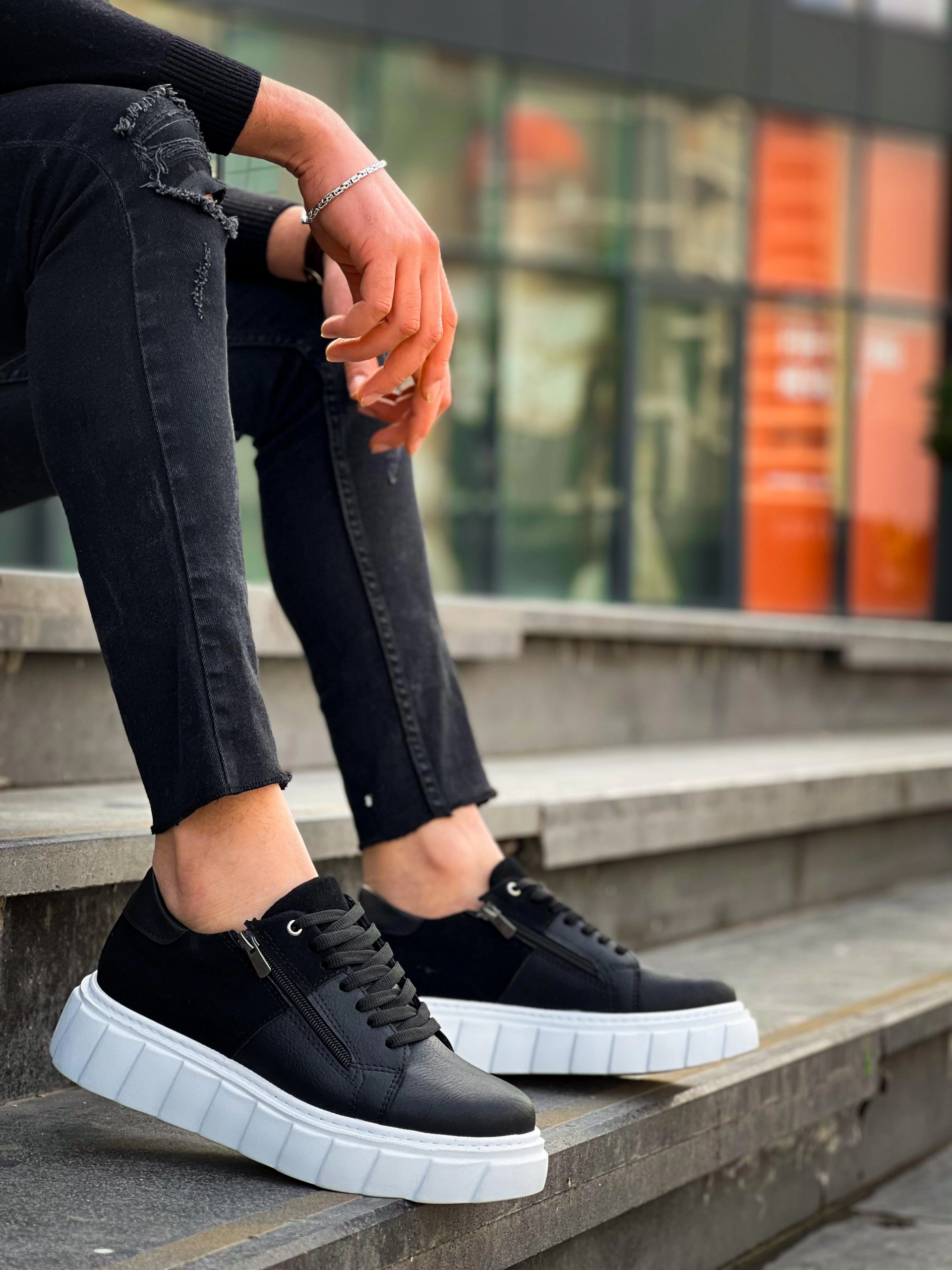 Kb-X155 Kuback Siyah Cilt Siyah Süet Detaylı Beyaz Yüksek Taban Günlük Spor Ayakkabı (Numara: 43)
