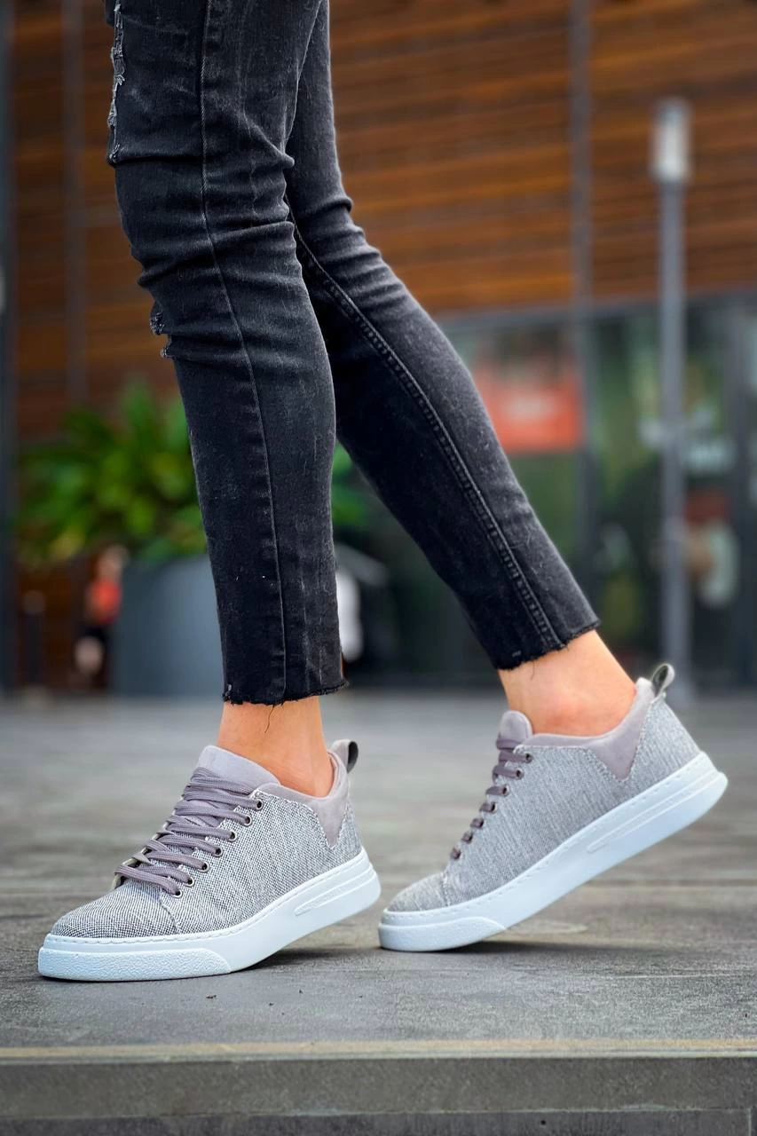 Kb-X204 Kuback Gri Keten Beyaz Yüksek Taban Günlük Erkek Spor Ayakkabı (Numara: 41)