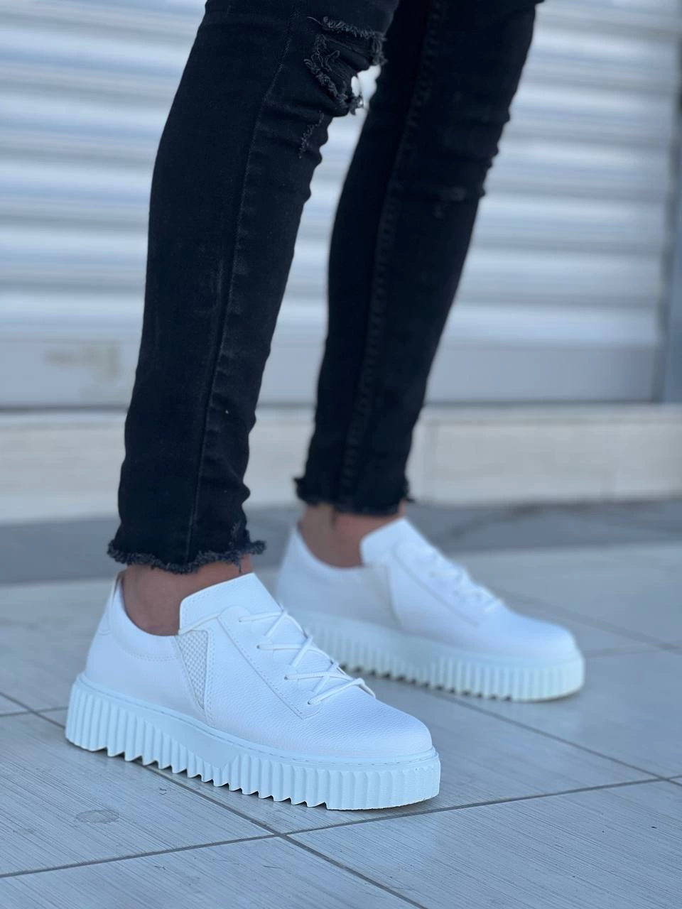 Kb-X502 Kuback Beyaz Cilt Yüksek Beyaz Taban Bağcık Detaylı Lastikli Günlük Erkek Ayakkabı (Numara: 40)