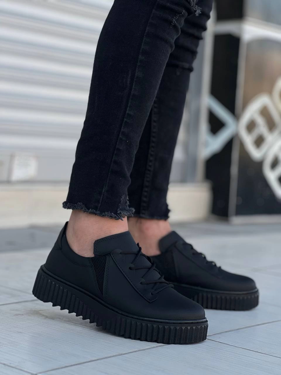 KB-X502 Kuback Siyah Cilt Yüksek Siyah Taban Bağcık Detaylı Lastikli Günlük Erkek Ayakkabı (Numara: 42)