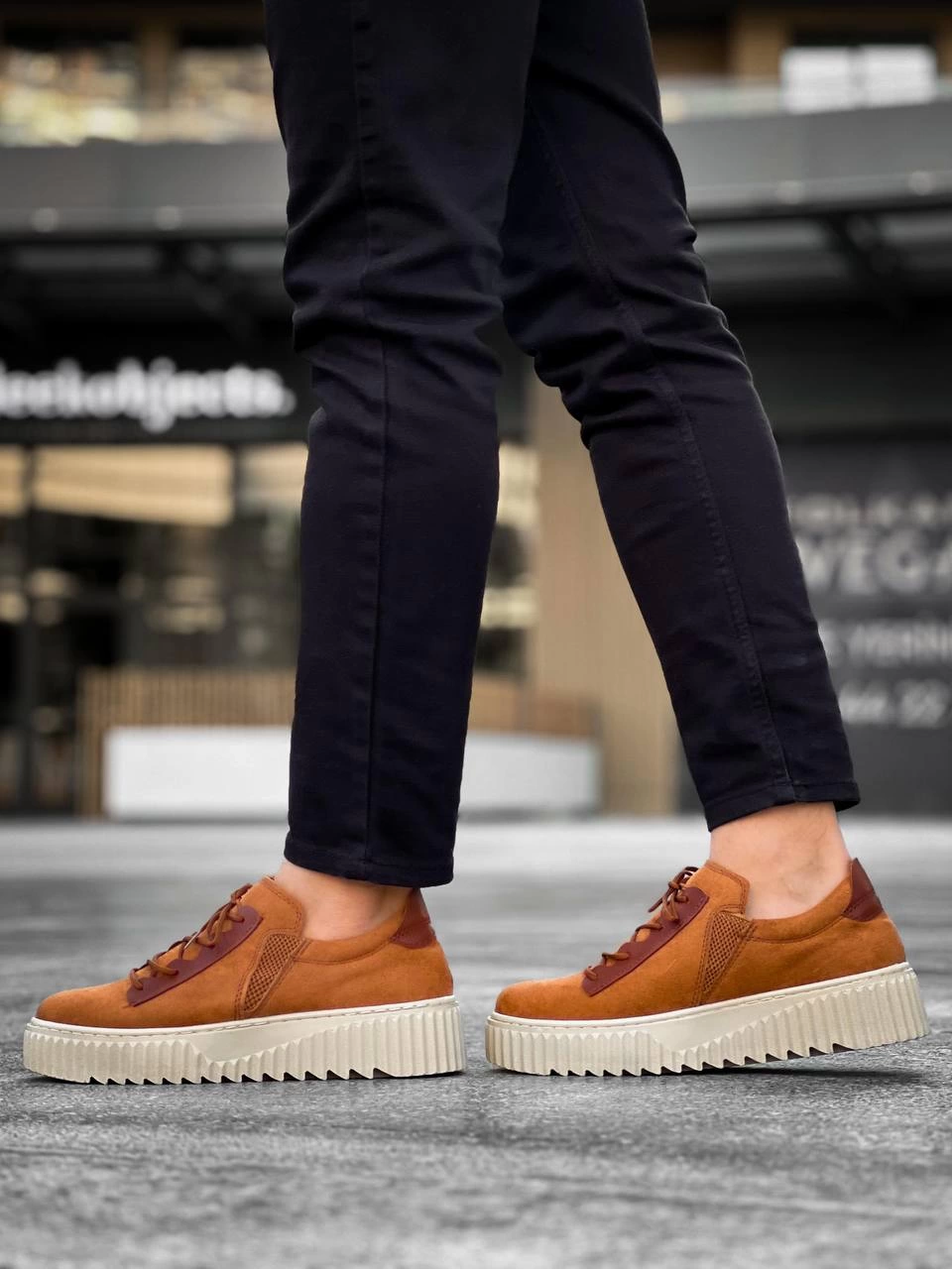Kb-X502 Kuback Taba Süet Yüksek Bej Taban Bağcık Detaylı Lastikli Günlük Erkek Ayakkabı (Numara: 41)