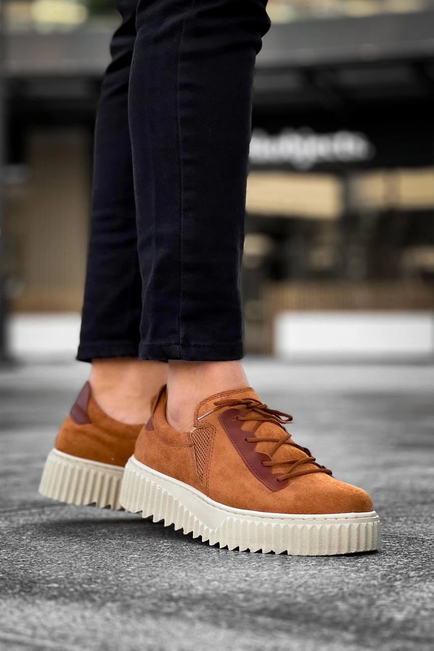 Kb-X502 Kuback Taba Süet Yüksek Bej Taban Bağcık Detaylı Lastikli Günlük Erkek Ayakkabı (Numara: 43)