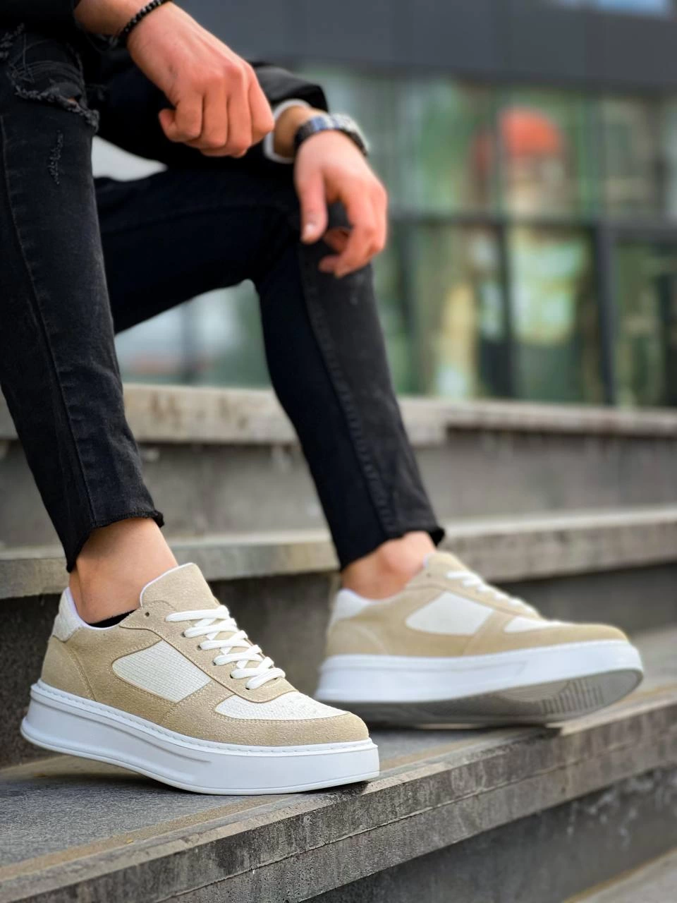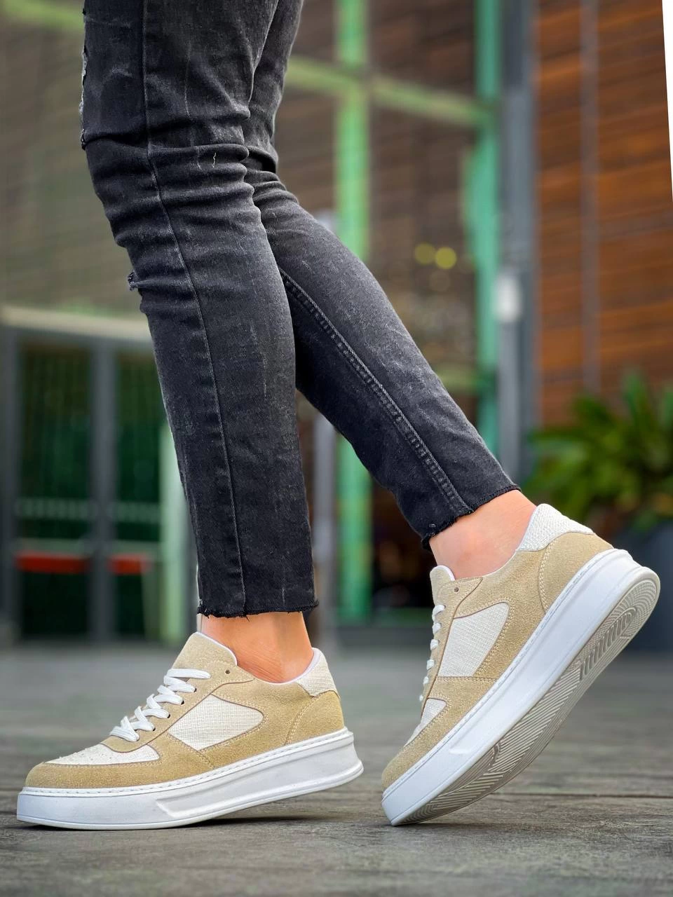 Kb-X8 Kuback Bej Keten Süet Yüksek Taban Günlük Spor Ayakkabı (Numara: 43)