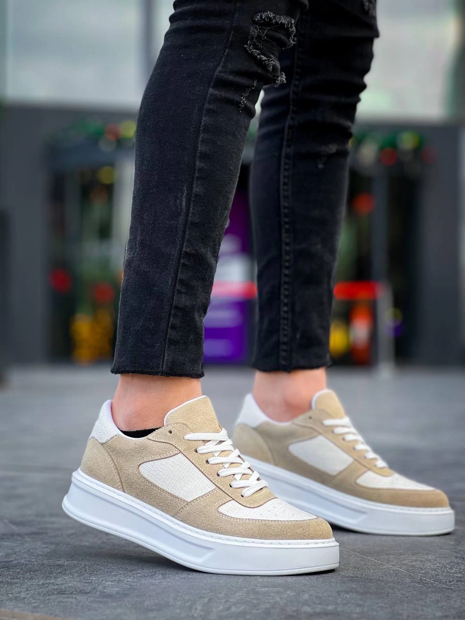 KB-X8 Kuback Bej Keten Süet Yüksek Taban Günlük Spor Ayakkabı (Numara: 43)