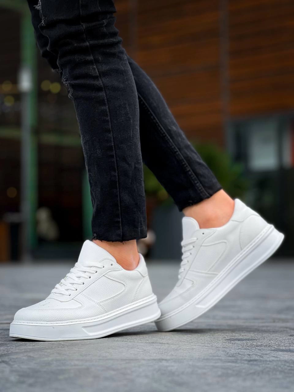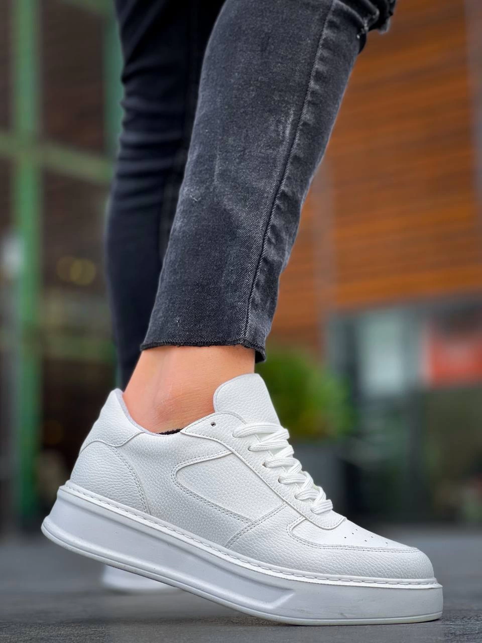KB-X8 Kuback Beyaz Cilt Beyaz Yüksek Taban Günlük Spor Ayakkabı (Numara: 40)