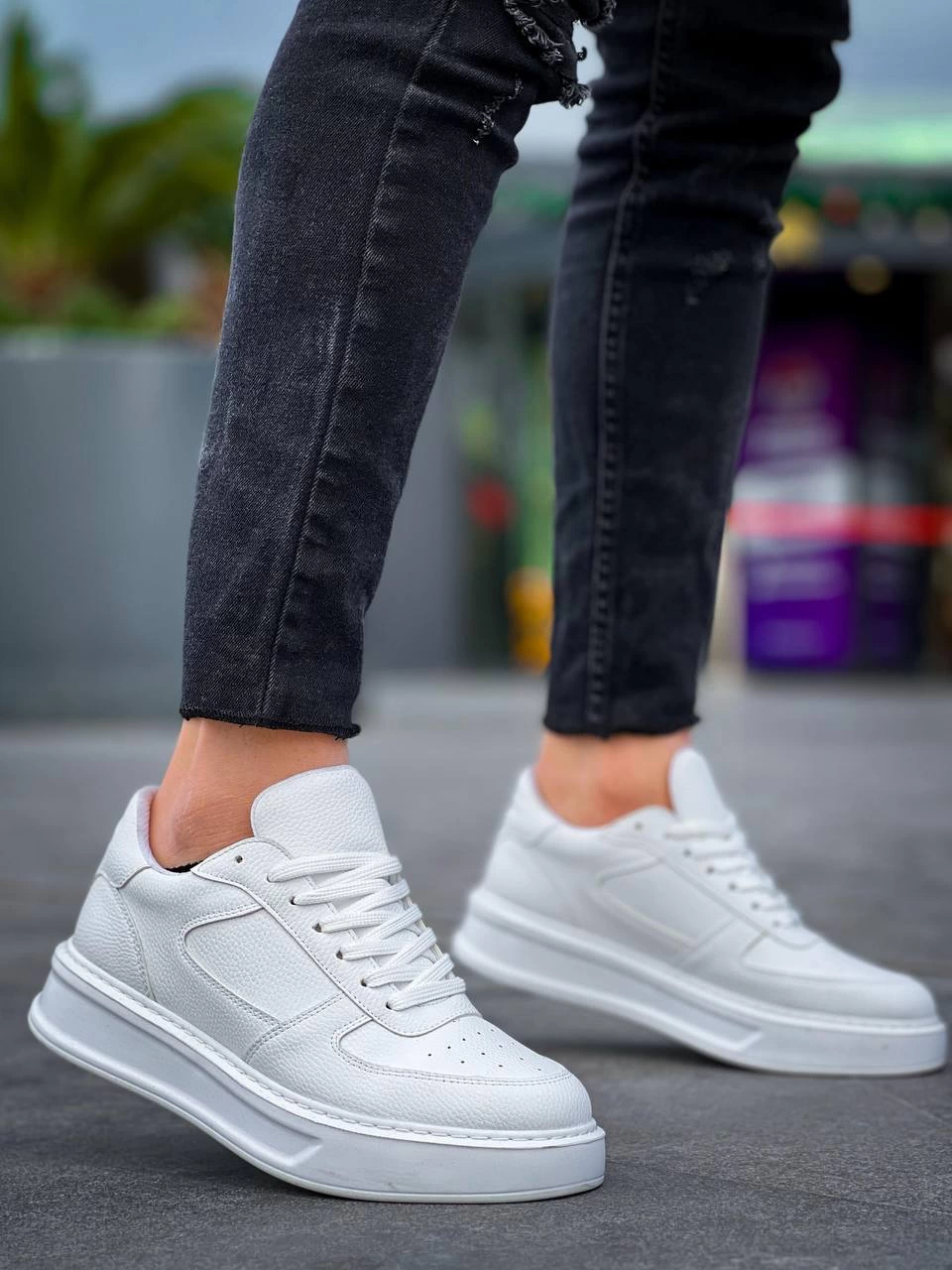 KB-X8 Kuback Beyaz Cilt Beyaz Yüksek Taban Günlük Spor Ayakkabı (Numara: 43)