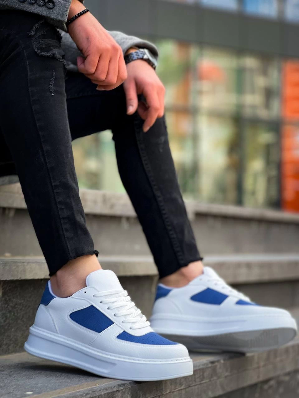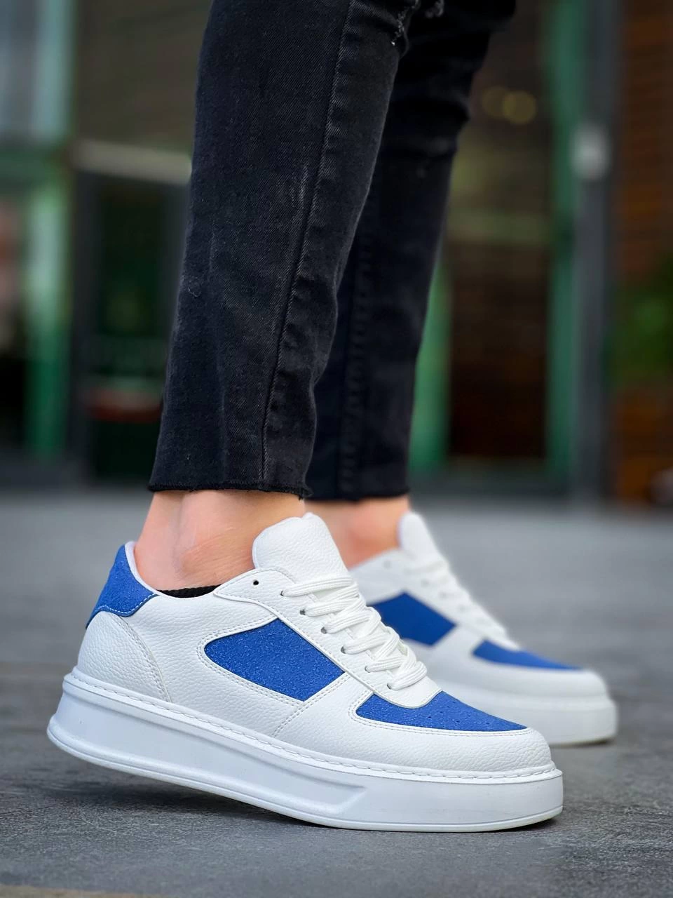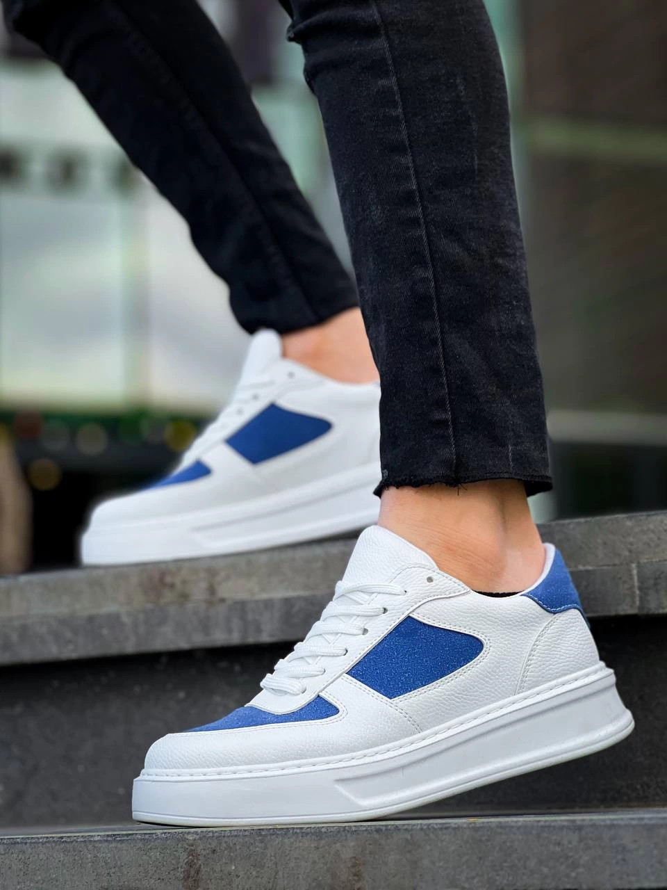 Kb-X8 Kuback Beyaz Cilt Mavi Süet Detaylı Beyaz Yüksek Taban Günlük Spor Ayakkabı (Numara: 40)