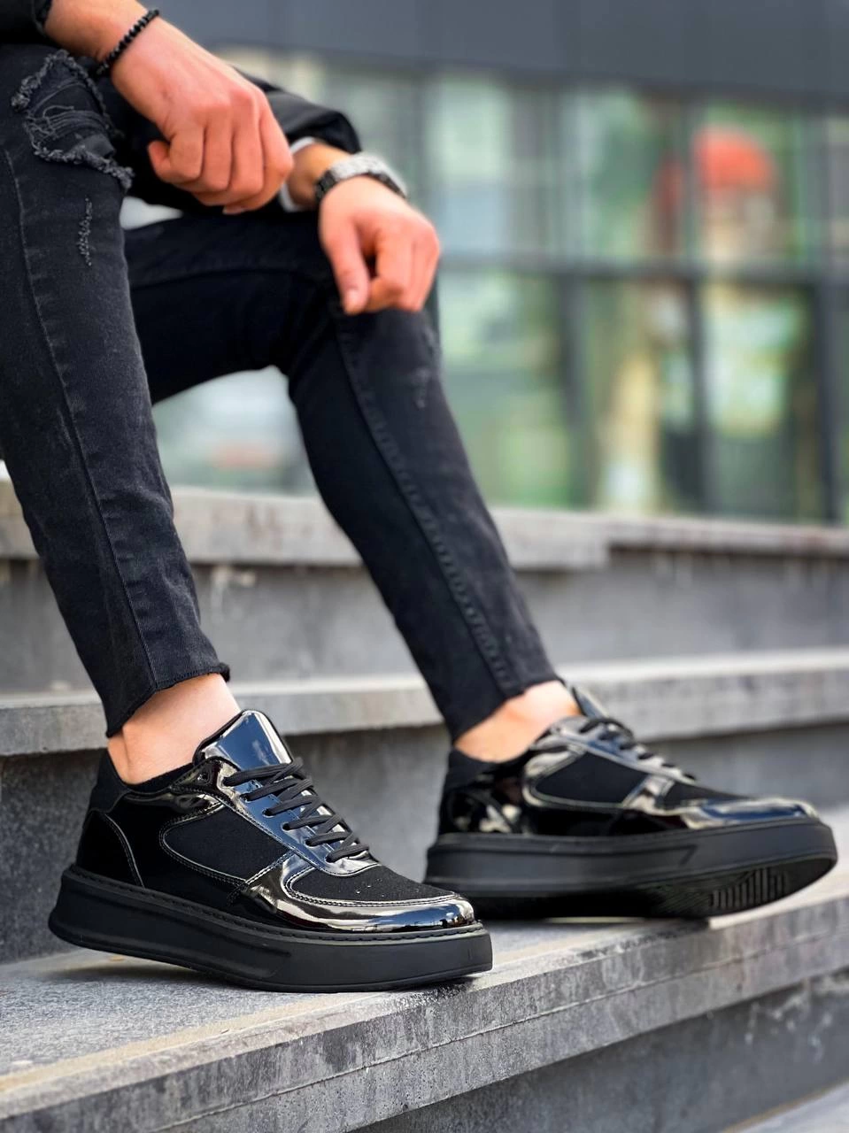 KB-X8 Kuback Siyah Rugan Yüksek Siyah Taban Günlük Spor Ayakkabı (Numara: 44)