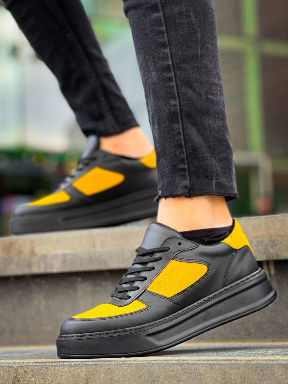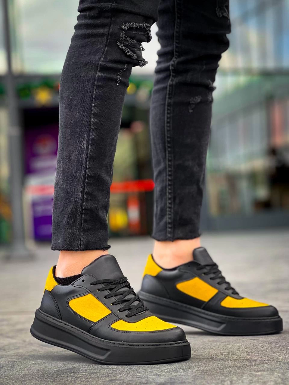 Kb-X8 Kuback Siyah Sarı Cilt Yüksek Taban Günlük Spor Ayakkabı (Numara: 40)