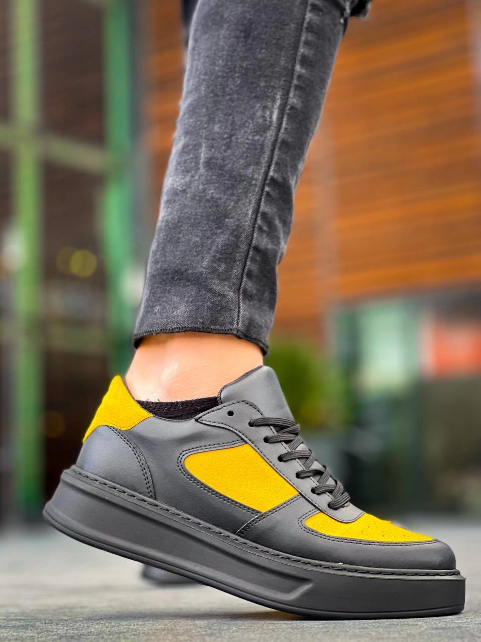 KB-X8 Kuback Siyah Sarı Cilt Yüksek Taban Günlük Spor Ayakkabı (Numara: 40)