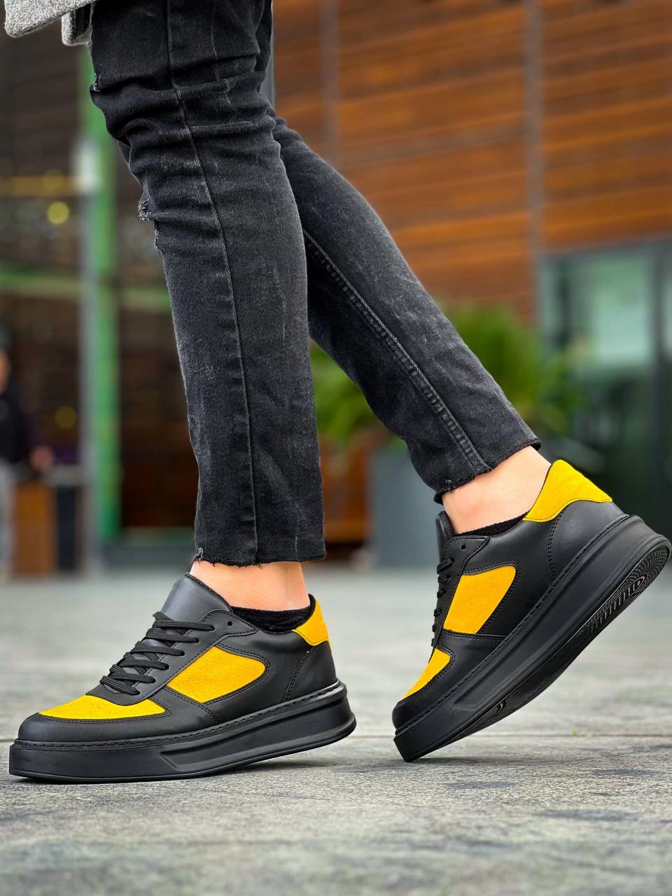 KB-X8 Kuback Siyah Sarı Cilt Yüksek Taban Günlük Spor Ayakkabı (Numara: 43)