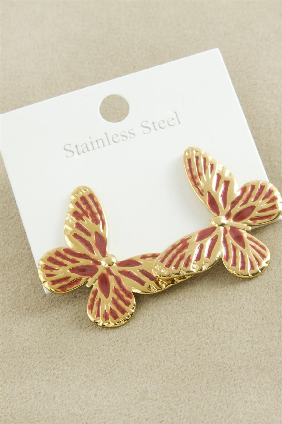 Kelebek Mineli Lüks Çelik Küpe-Kırmızı