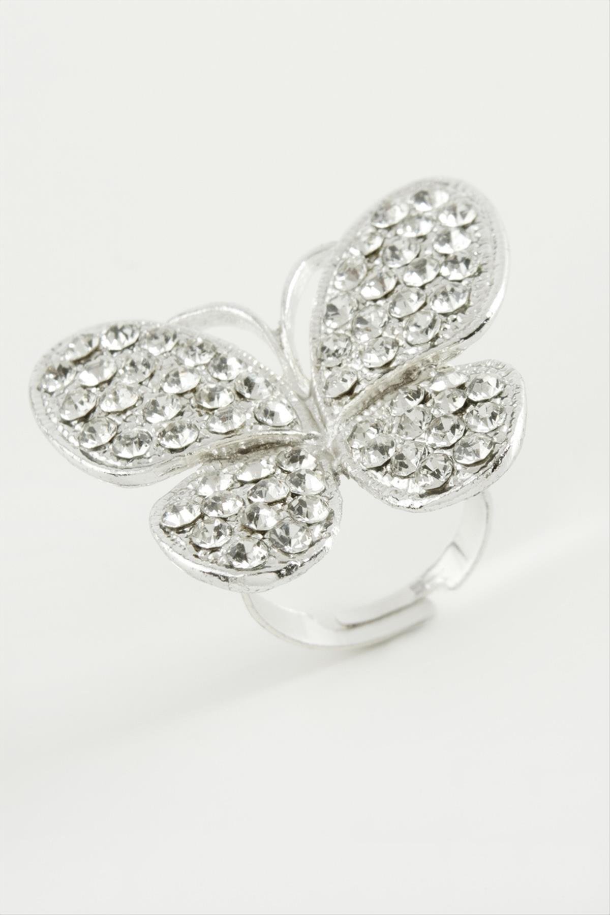 Kelebek Taşlı Yüzük-Gümüş Rengi