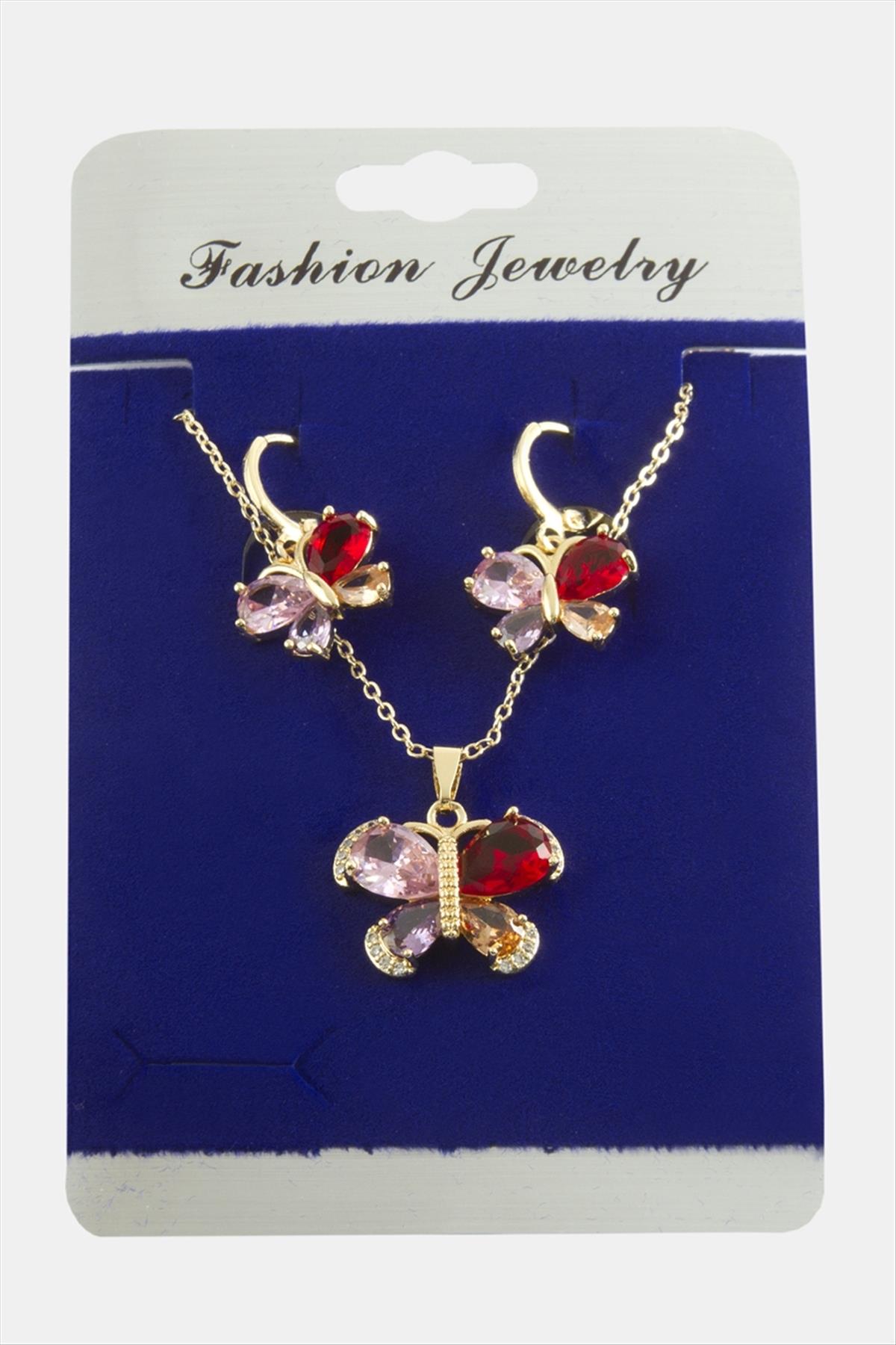 Kelebek Zirkon Taşlı Set Kolye