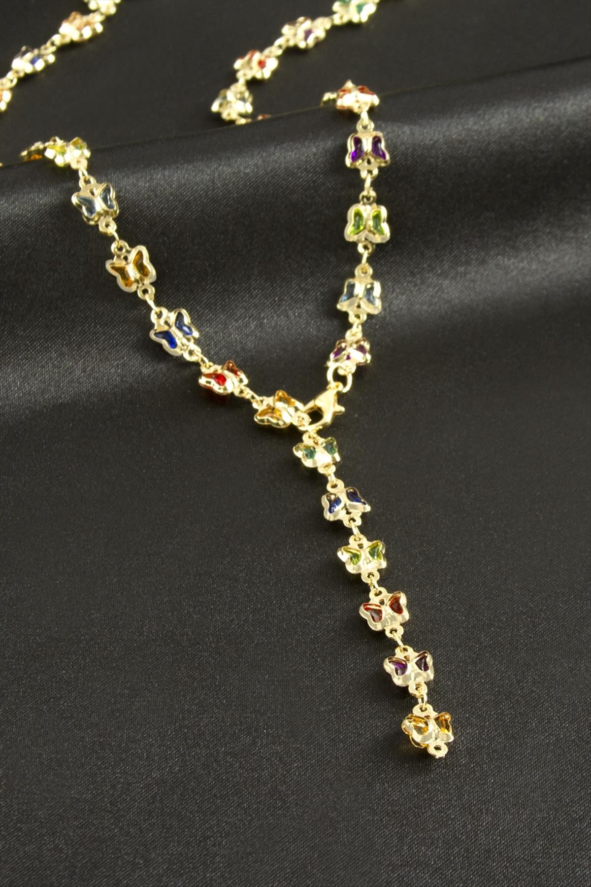 Kelebek Zirkon Taşlı Y Kolye-Sarı