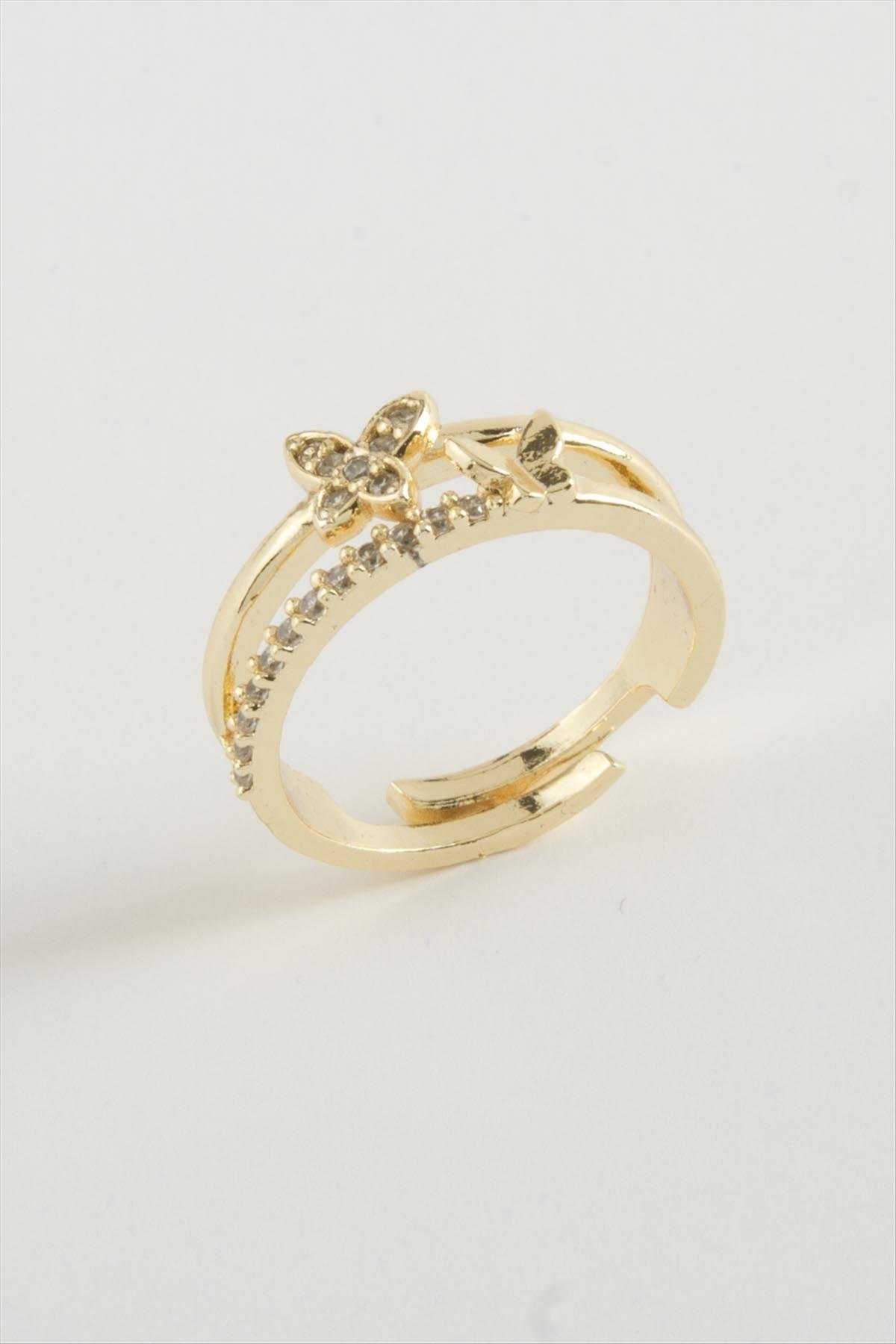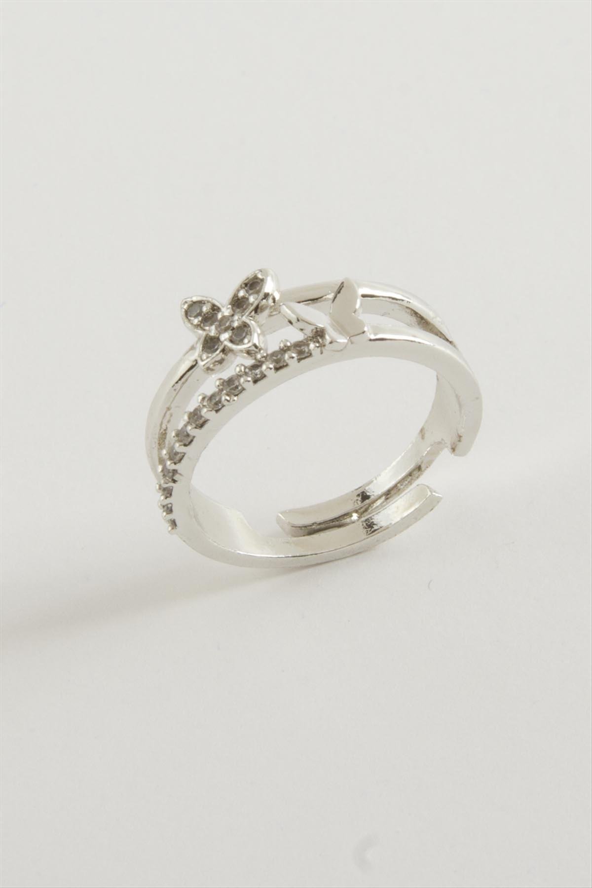 Kelebek Zirkon Taşlı Yüzük-Gümüş Rengi