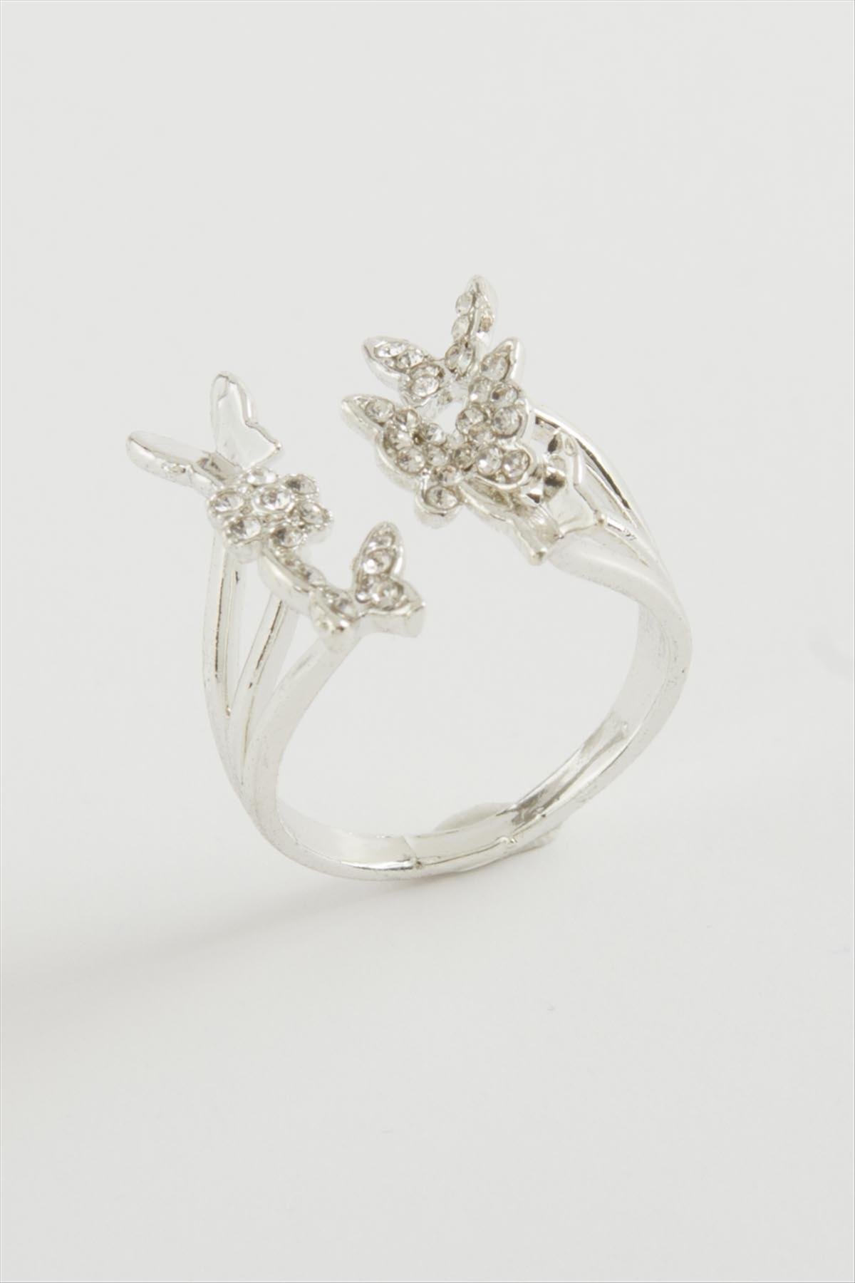 Kelebek Zirkon Taşlı Yüzük-Gümüş Rengi