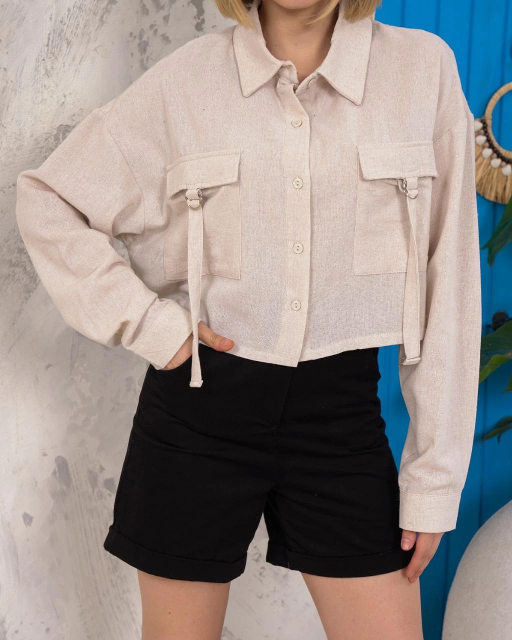 Kemer Cepli Keten Crop Gömlek Krem S255350 (Beden: L)