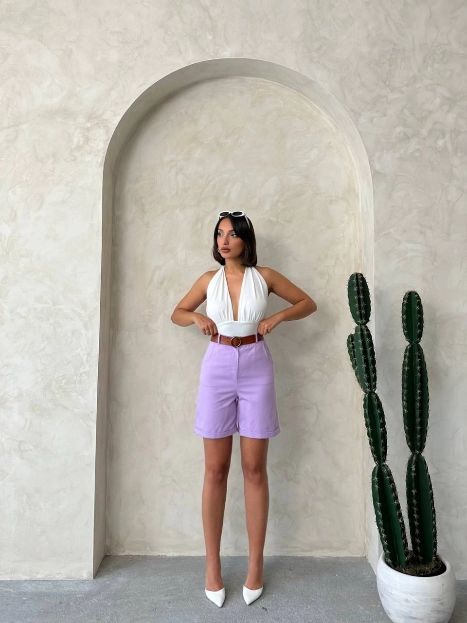 Bu lila renkli kemerli gabardin şort, yaz aylarının vazgeçilmez parçası olmaya aday! Şıklığı ve rahatlığı bir arada sunan şort, gardırobunuzun favori parçalarından biri olmaya aday.