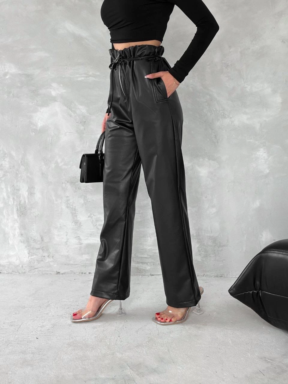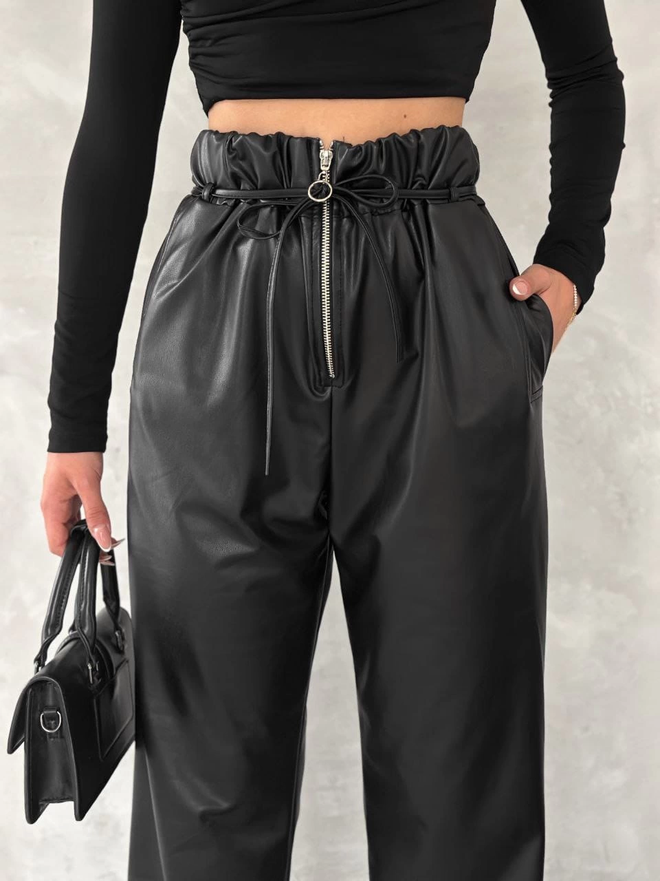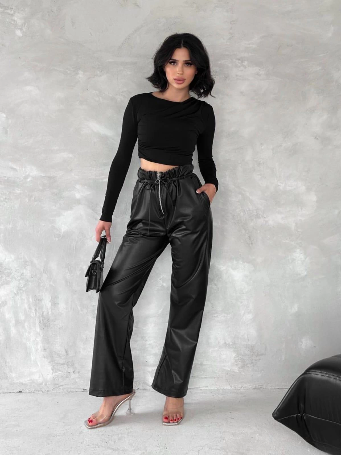 İnce kemer detayıyla şık bir görünüm sunan T1178 Deri Pantolon, gardırobunuzun vazgeçilmez parçalarından biri olmaya aday!