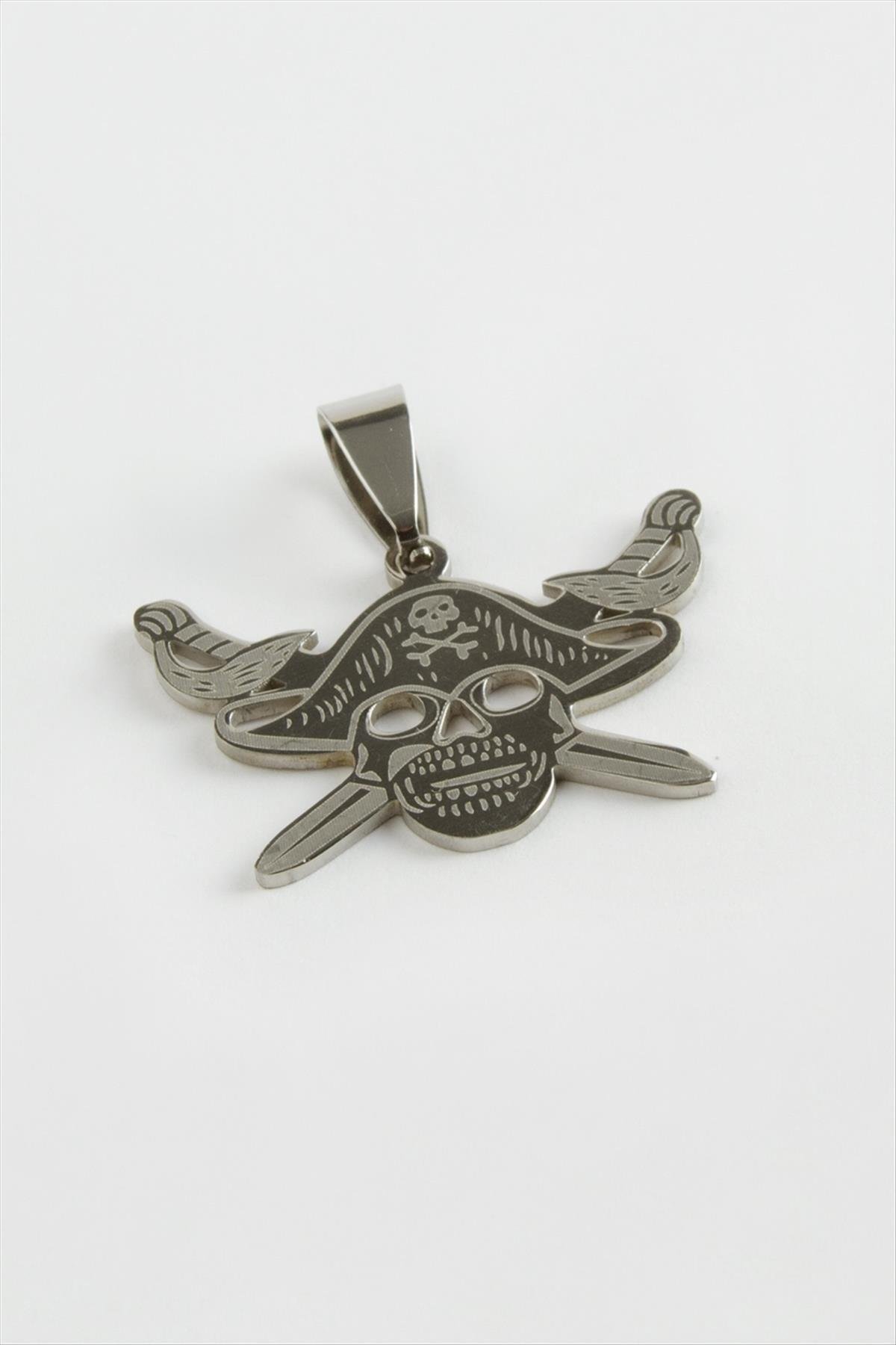 Kılıç Kuru Kafa Çelik Kolye Ucu 3 cm-Gümüş Rengi